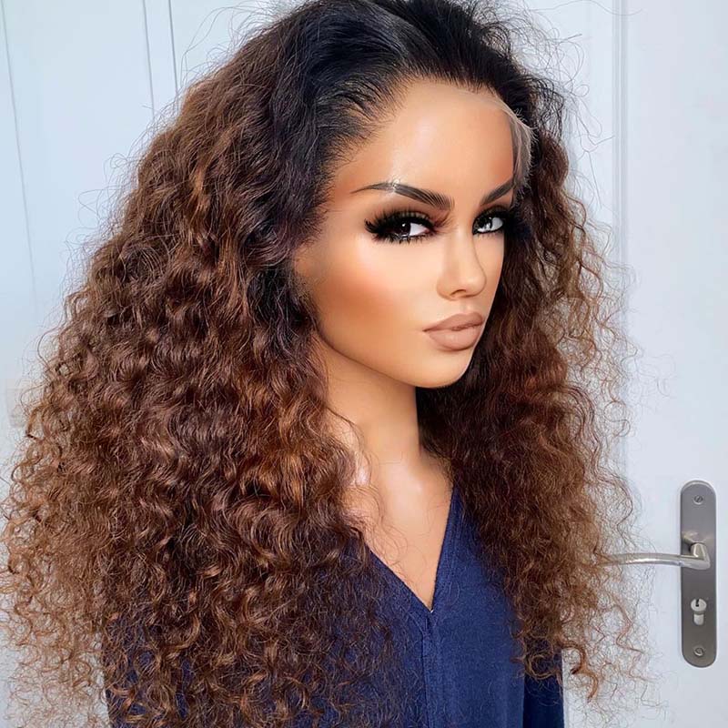 Beeos 13X4 SKINLIKE Real HD Lace Full Frontal Wig Ombre 1B/30 Color Curly BL024