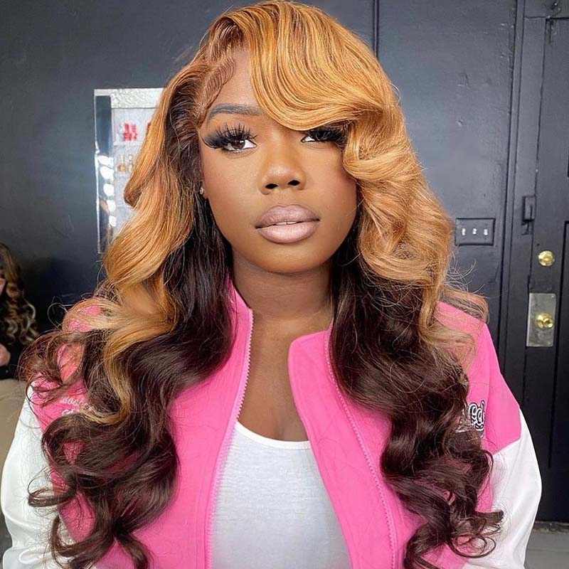 Beeos 13X4 SKINLIKE Real HD Lace Full Frontal Lace Wig Body Wave Ombre Color 13X6 Wig BL088