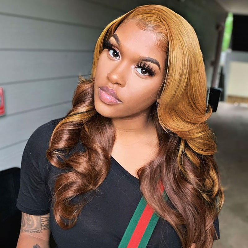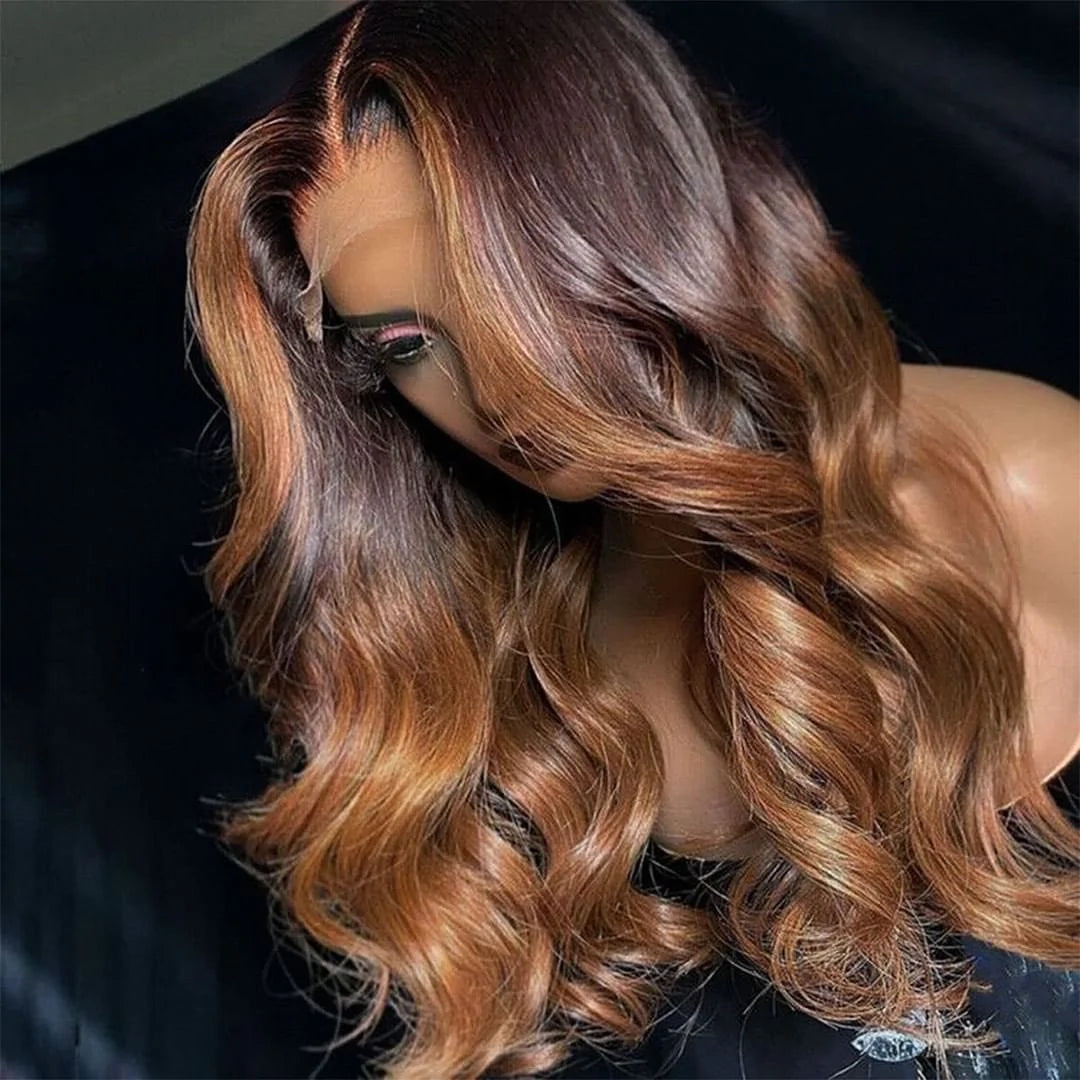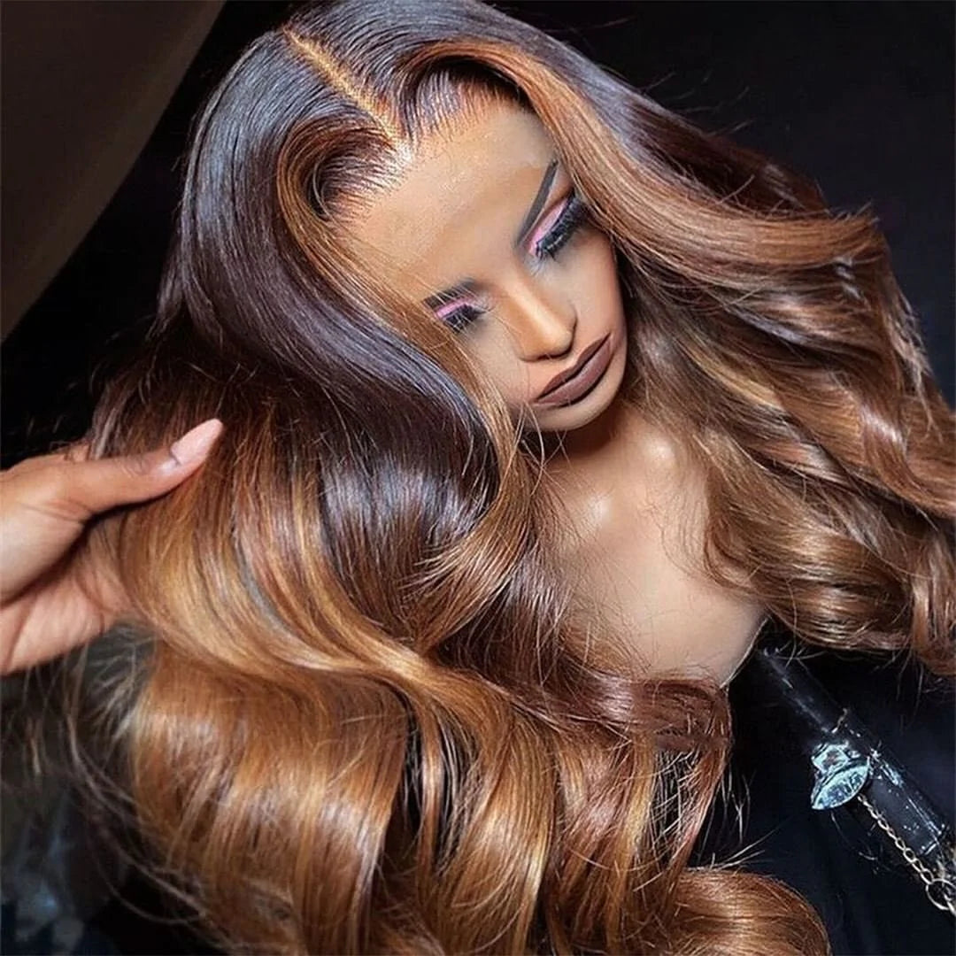 BEEOS 13X4 SKINLIKE Real HD Lace Full Frontal Wig Ombre Brown Body Wave BL142