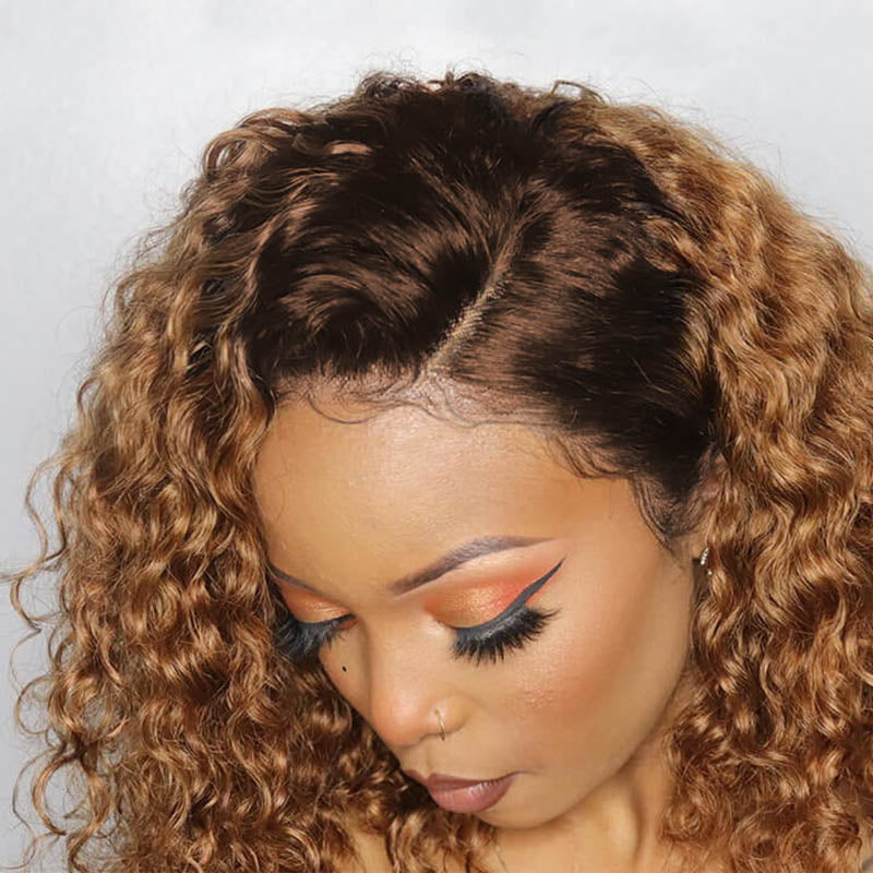 Beeos 13X4 SKINLIKE Real HD Lace Full Frontal Wig Ombre Curly Clean Hairline BL076