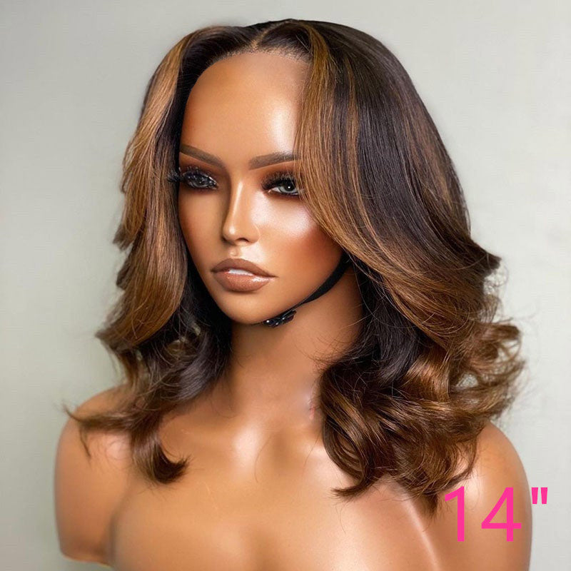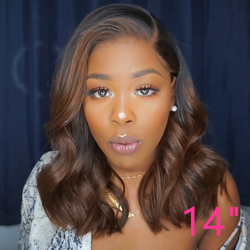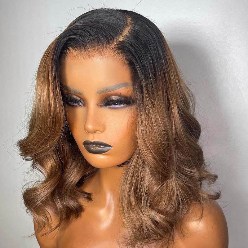 Beeos SKINLIKE Real HD Lace Front Wig Wave Bob Ombre Color Hair BL005