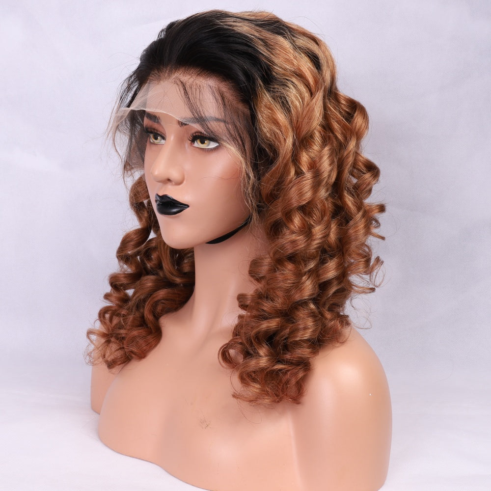 Beeos 13X4 SKINLIKE Real HD Lace Full Frontal Wig Wave Bob Ombre Color Hair BL005