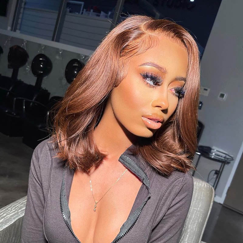 BEEOS 13X4 HD Lace Full Frontal Brown Color Wave Bob Wig BL030