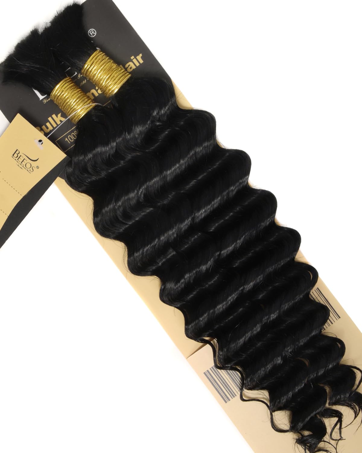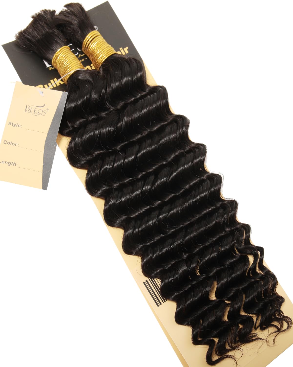 BEEOS Bulk Hair for Braiding 1# Jet Black Color Deep Wave Boho Braiding Curly for Bohemian No Weft ZH094