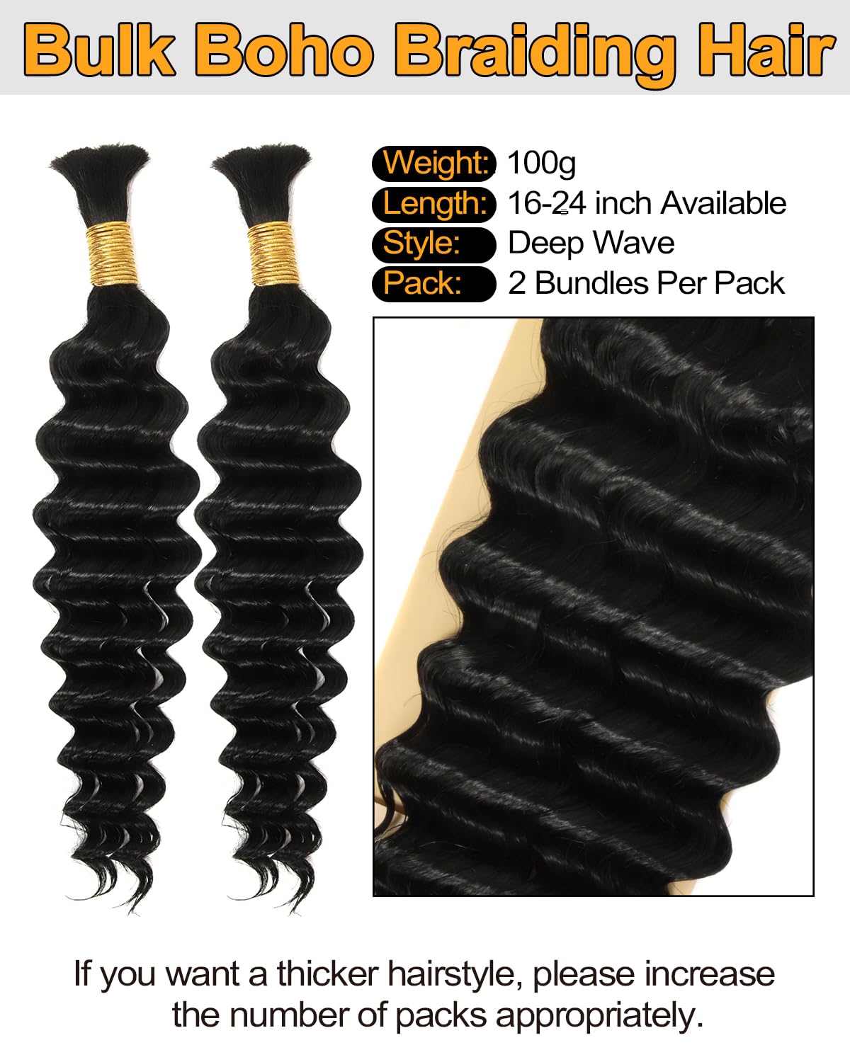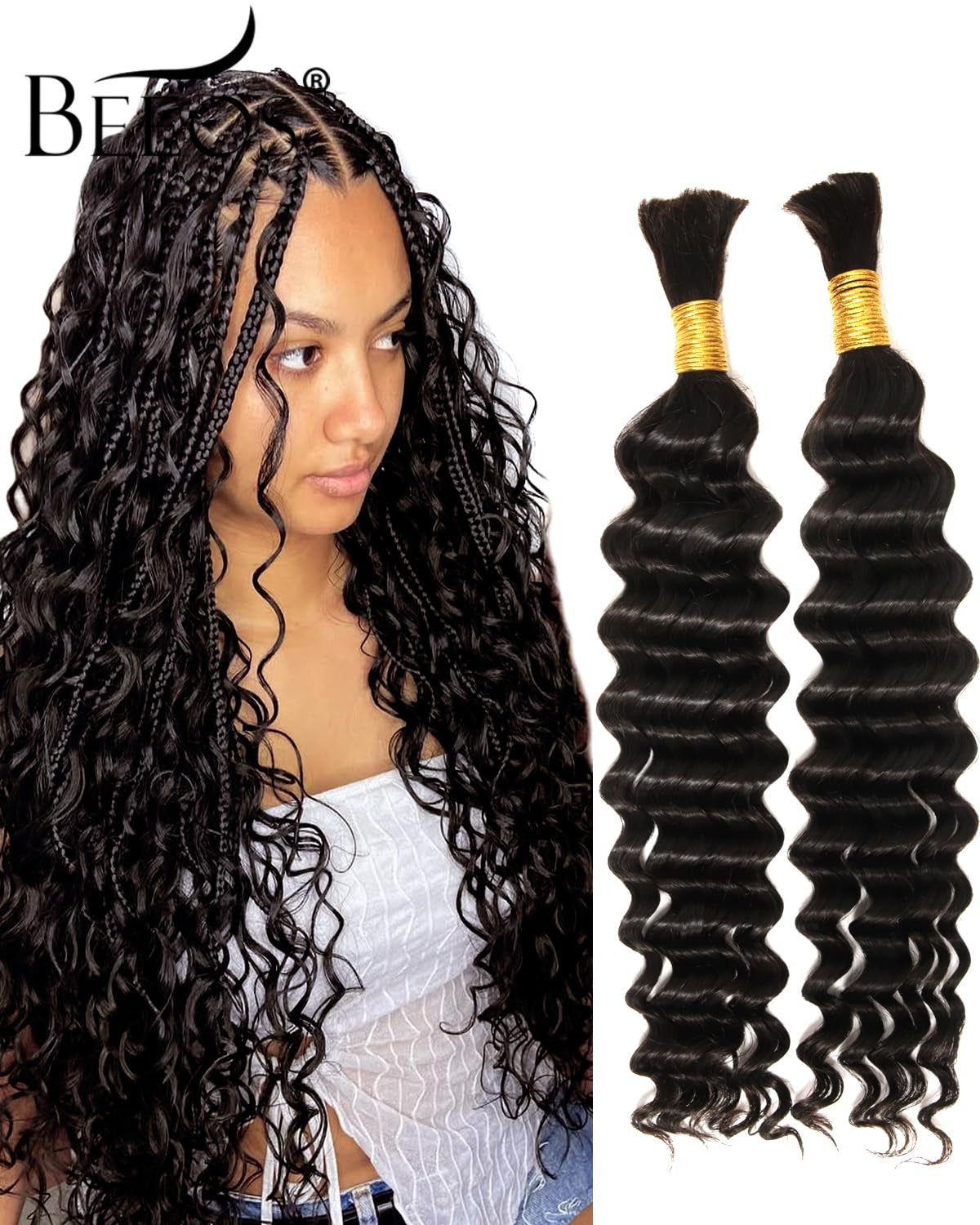 BEEOS Bulk Hair for Braiding Deep Wave Boho Braiding Curly for Bohemian No Weft ZH044