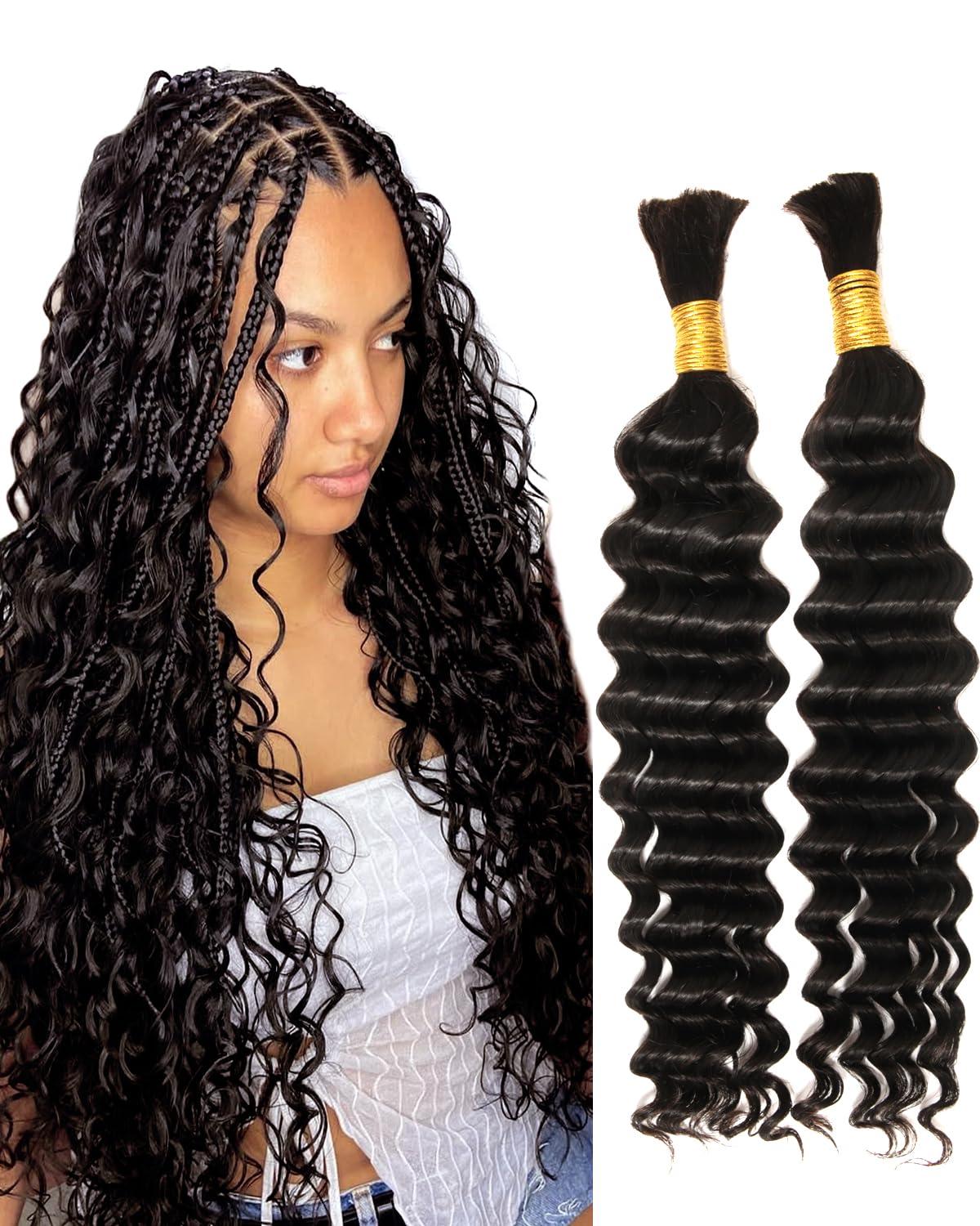 BEEOS Bulk Hair for Braiding Deep Wave Boho Braiding Curly for Bohemian No Weft ZH096