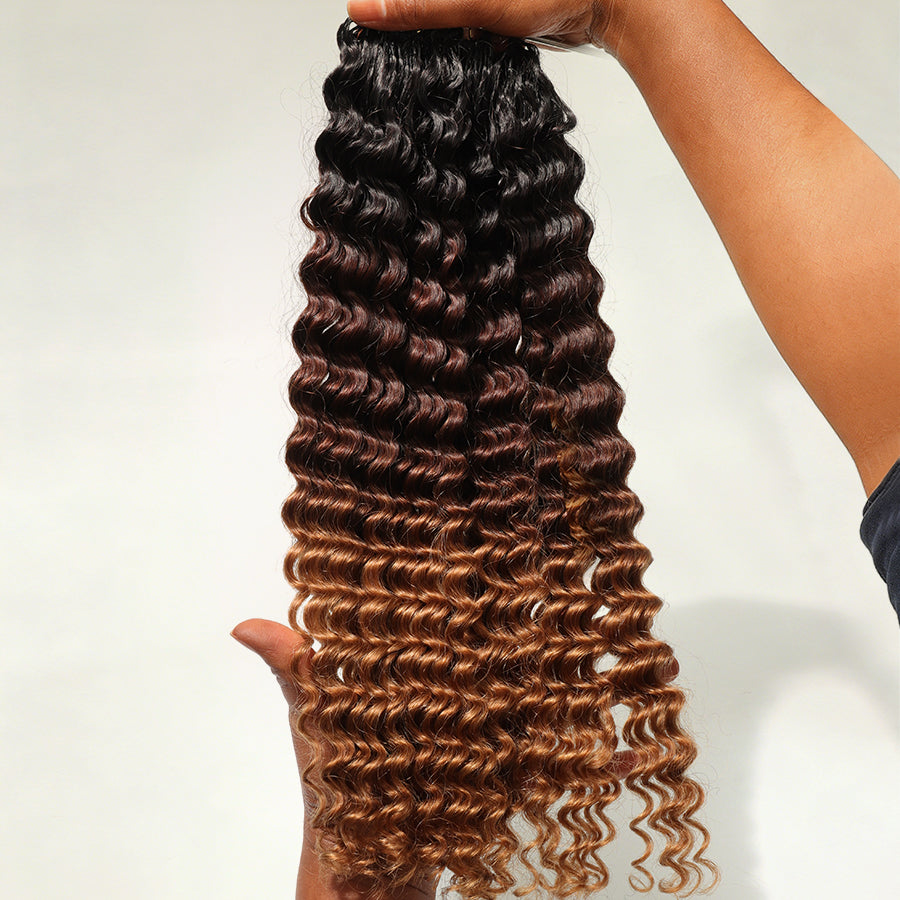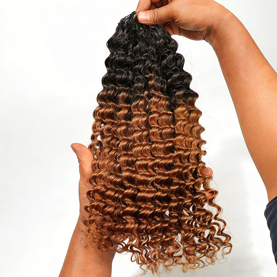 BEEOS 1BT30# Ombre Color Deep Wave Pre-Separated Feather Crochet 100% Human Hair Extensions ZH089