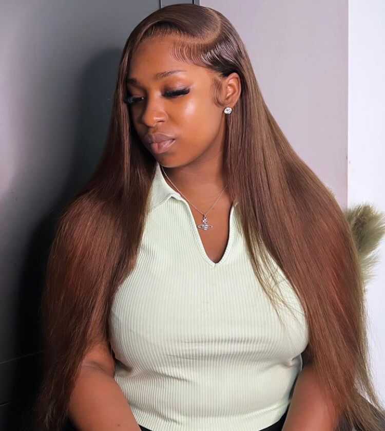 Beeos Ultra Fitted 13X6 SKINLIKE Real HD Lace Full Frontal Wig Silky Straight Brown Color BL107