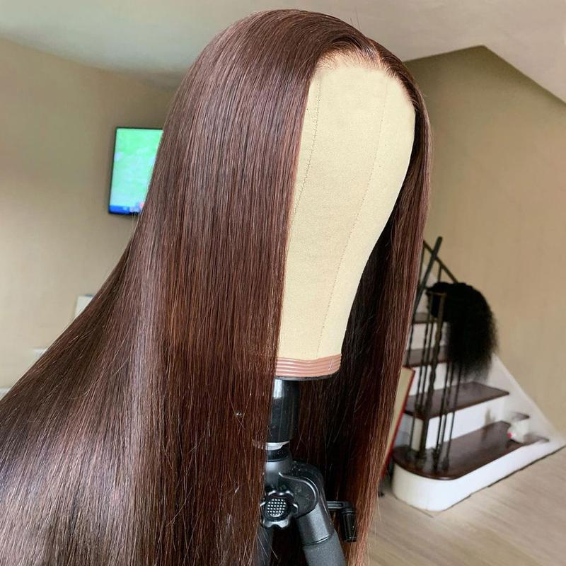 Beeos 13X4 Skinlike Real HD Lace Full Frontal Wig Straight Brown Hair Pre-plucked BL023