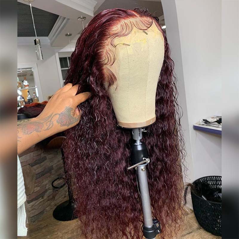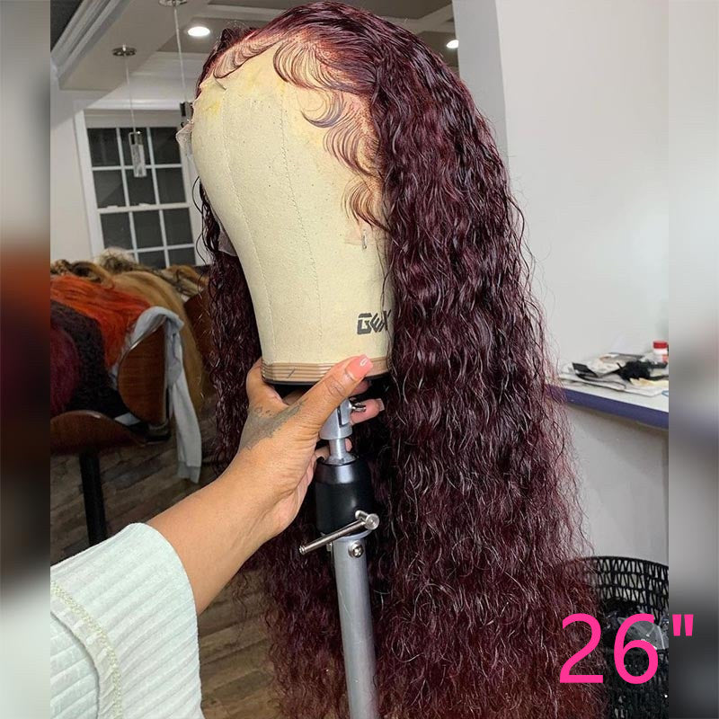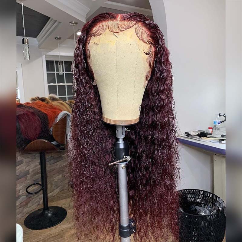 BEEOS Burgundy 99J# Color 13X4 Full Frontal Curly Style BL281