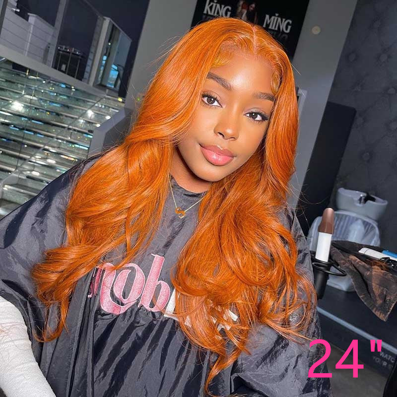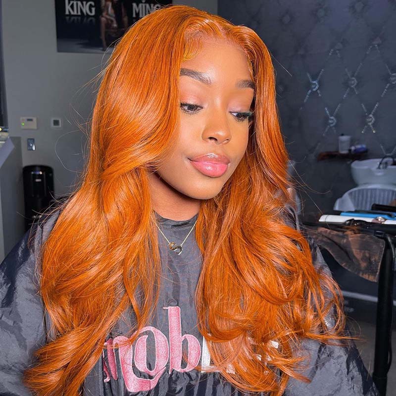 BEEOS Orange Color Body Wave 13X4 Full Frontal Lace Wig BL152