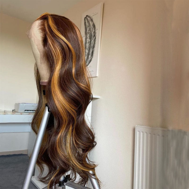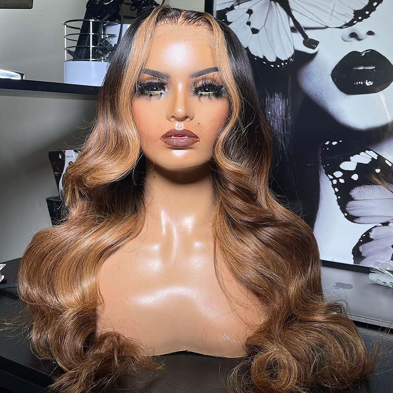 Beeos 13X4 SKINLIKE Real HD Lace Highlight Color Body Wave Full Frontal Wig BL155