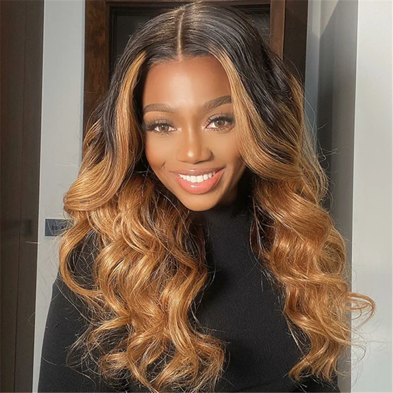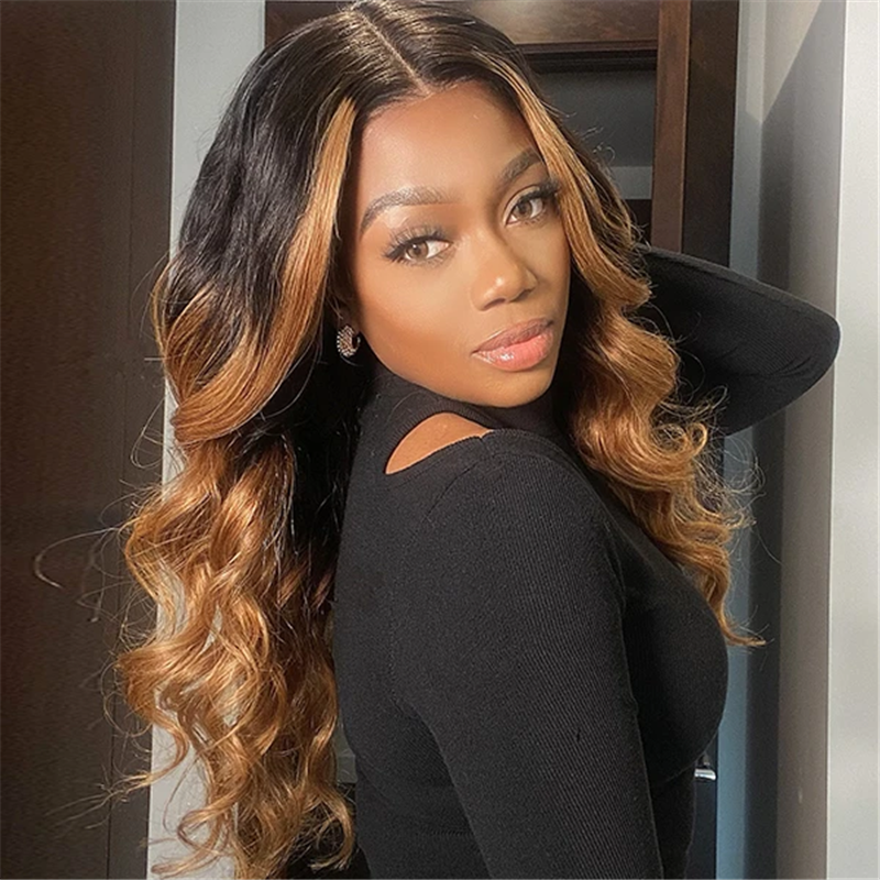 Beeos 13X4 SKINLIKE Real HD Lace Full Frontal Lace Wig Body Wave Ombre Color 13X6 Wig BL088