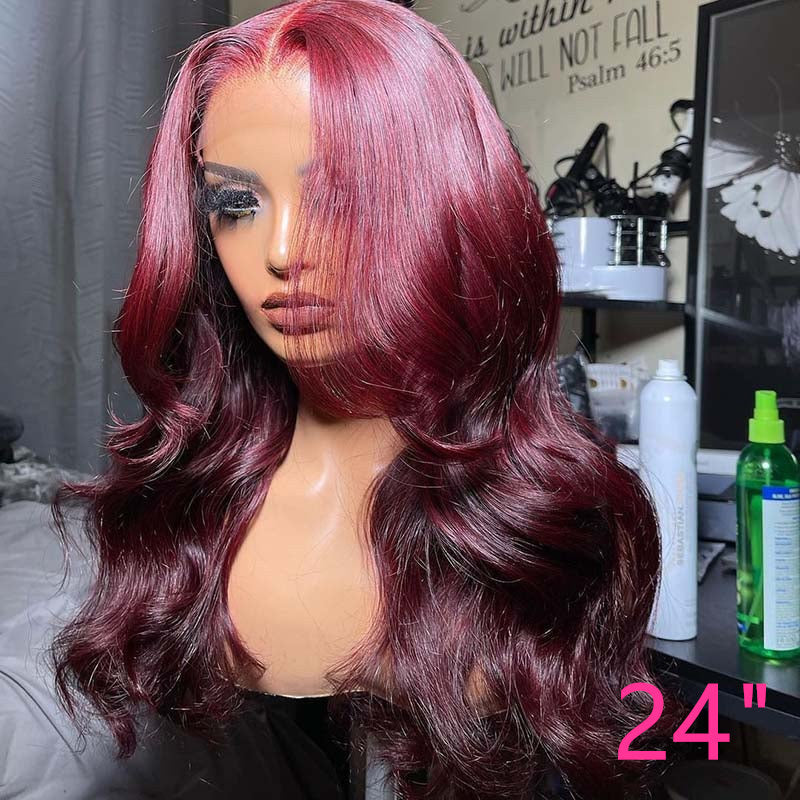 Beeos 99J Burgundy Color 13X4 Full Frontal Lace Wig Body Wave Sugar Plum Color BL010