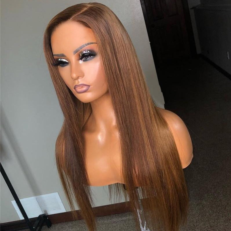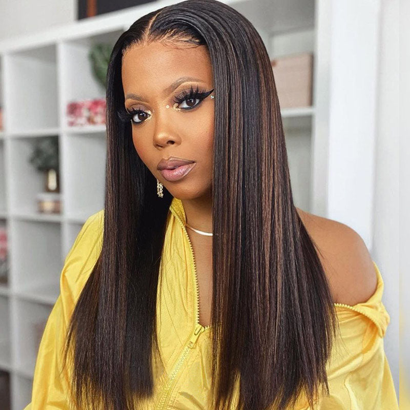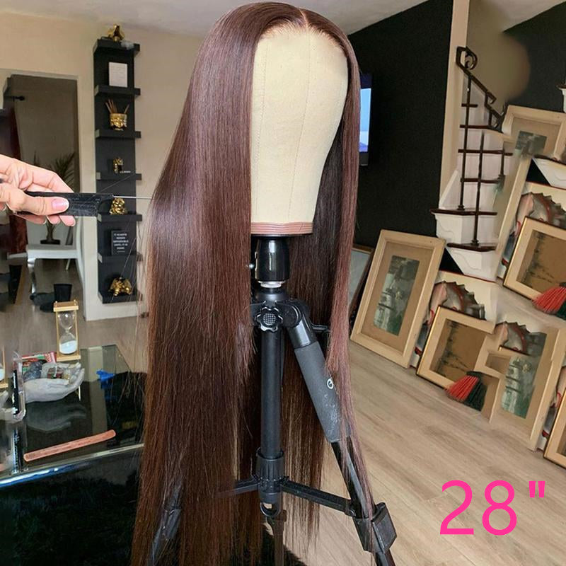 Beeos 13X4 SKINLIKE Real HD Lace Full Frontal Wig Straight Brown Hair Pre-plucked BL107
