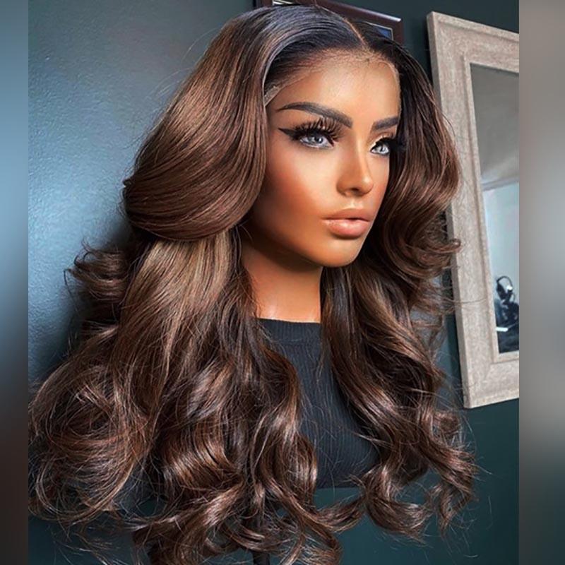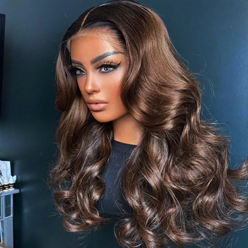 Beeos 13X4 SKINLIKE Real HD Lace Full Frontal Body Wave Chocolate Brown Color Hair BL221