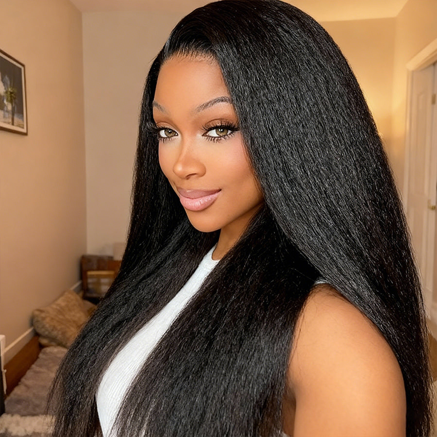 BEEOS Human Hair Kinky Straight Half Wig Seamless Flip Over Wigs ZH061