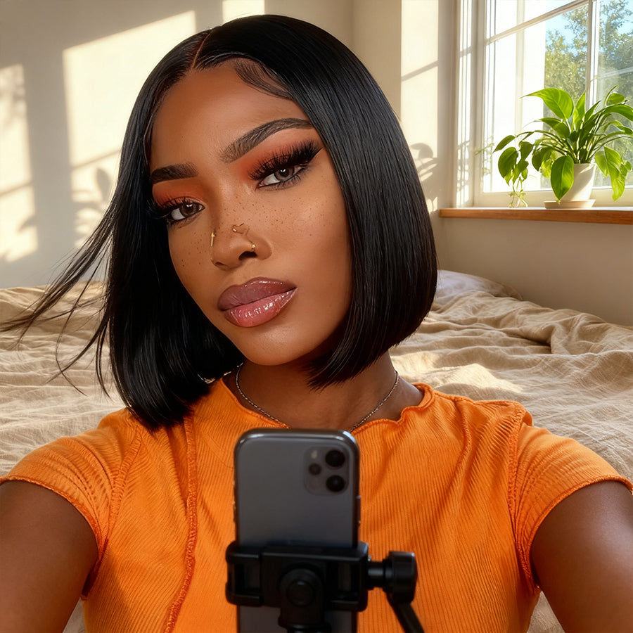 Beeos 5x5 SKINLIKE Real HD Lace Closure Bob Glueless Straight Wig BC019