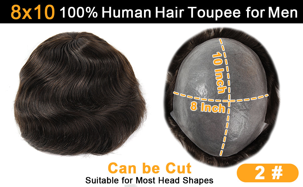 Beeos 8*10 Australia Toupee 100% Human Hair Invisible Knots Men's Hair Pieces TP12