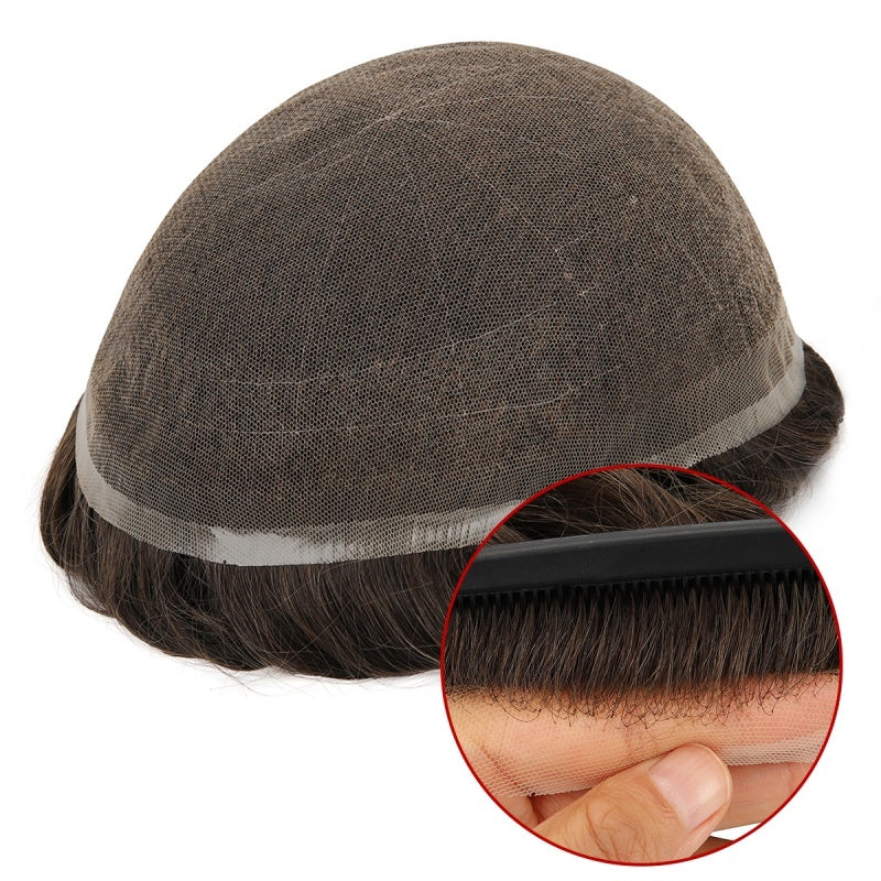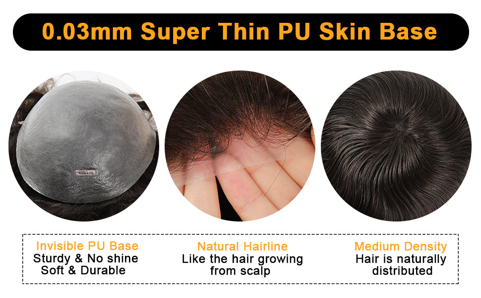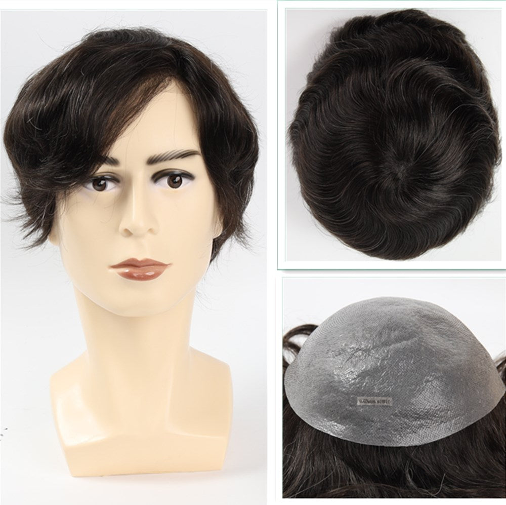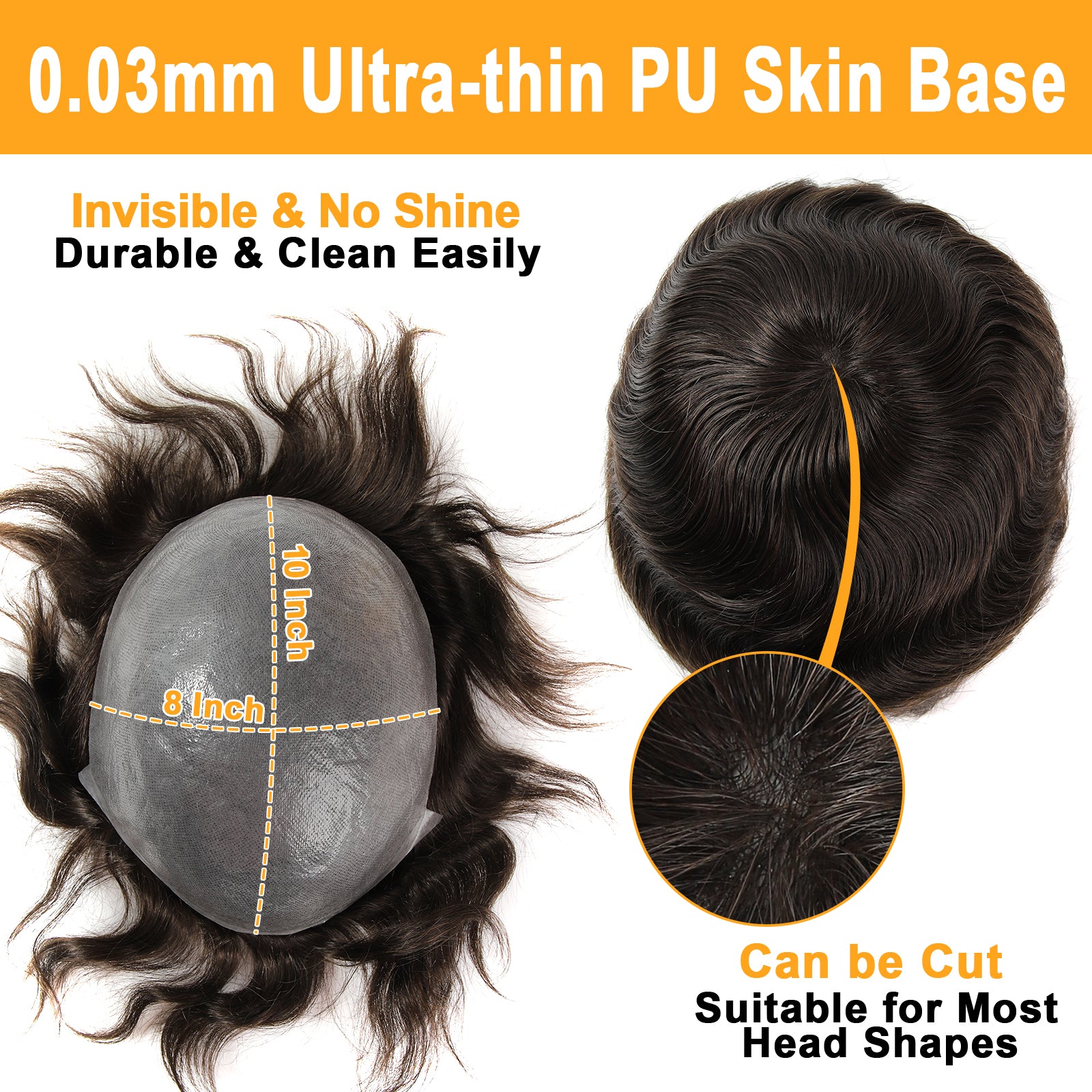 Beeos Invisible V-loop Knots Natural Hairline Men's Hair Pieces 100% Human Hair Thin Skin Toupee 0.03mm Thickness TP04