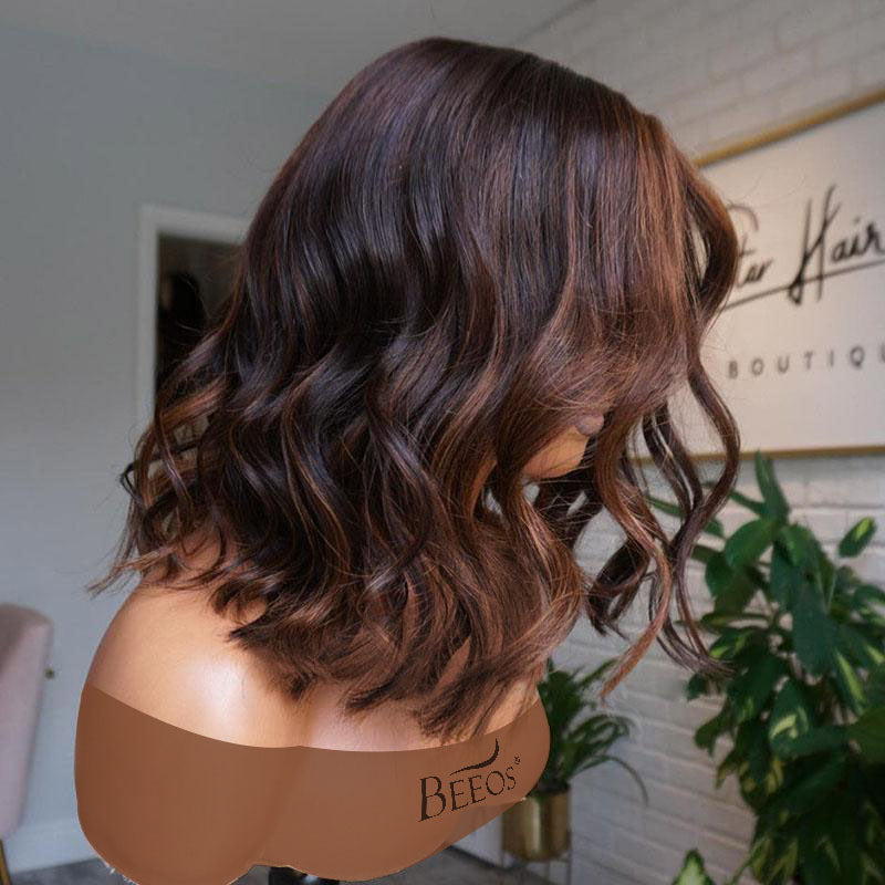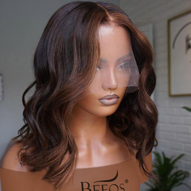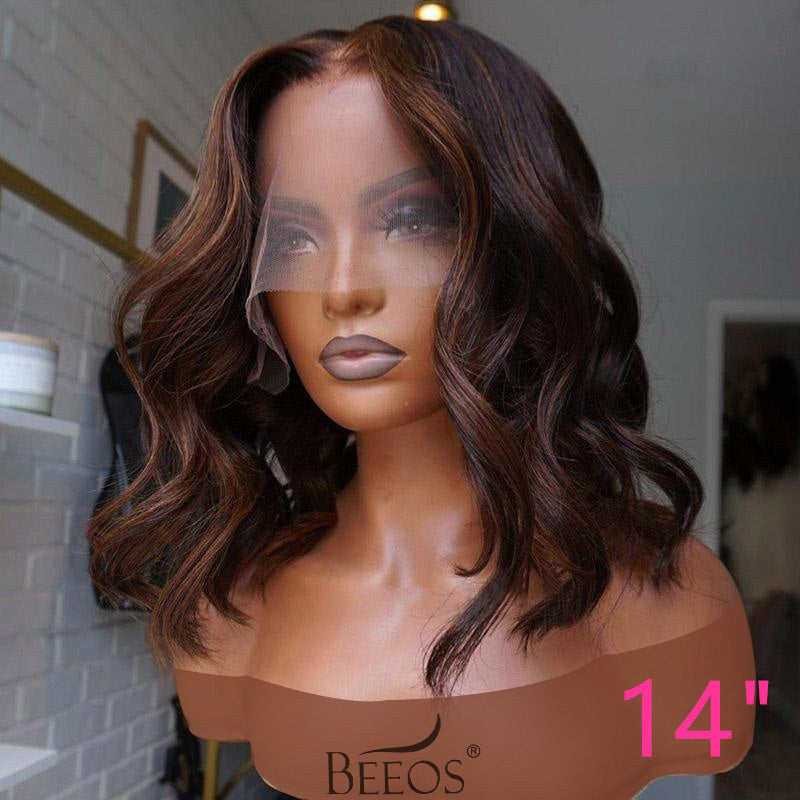 BEEOS 13x4 SKINLIKE Real HD Lace Highlight Color Wave Bob Full Frontal Wig BL064