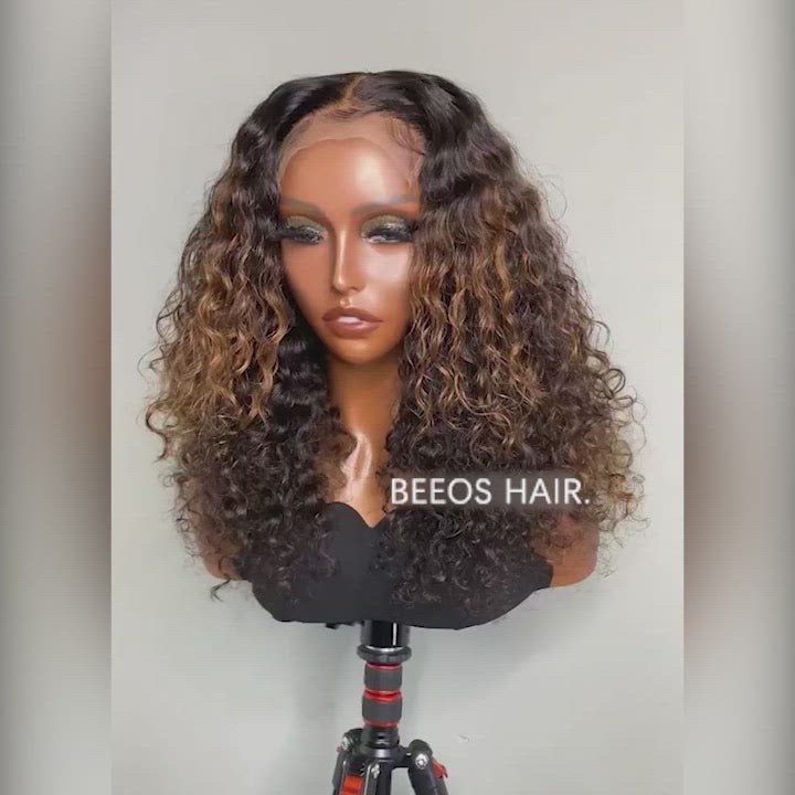 Beeos 13X4 SKINLIKE Real HD Lace Highlight Curly Full Frontal Wig BL069