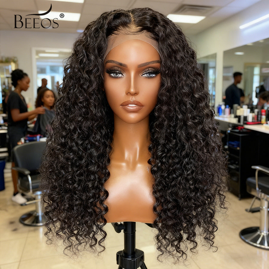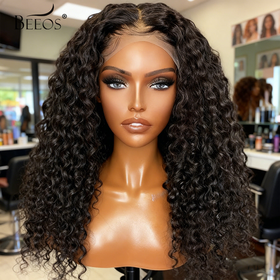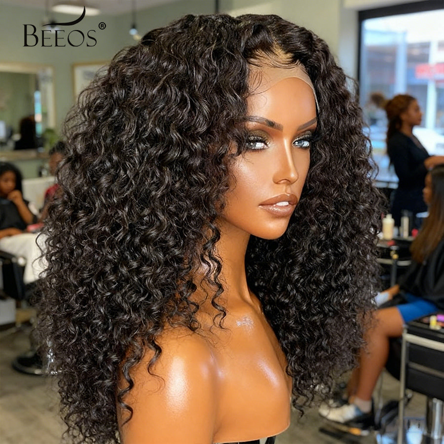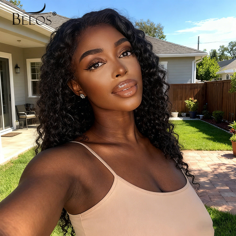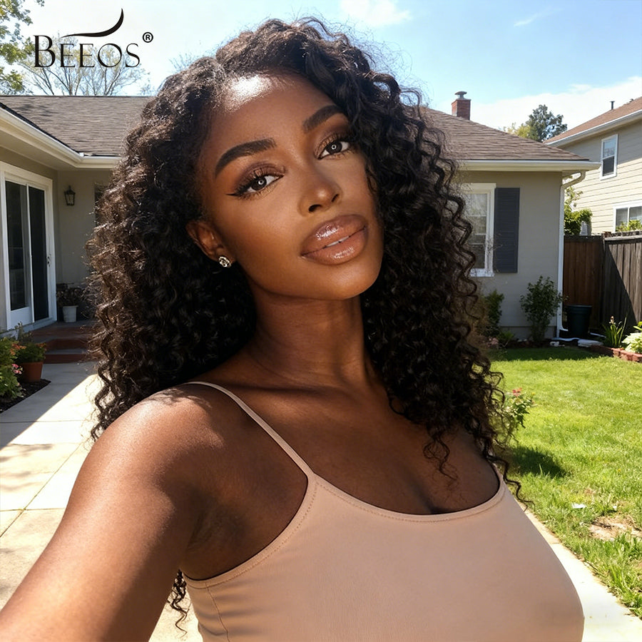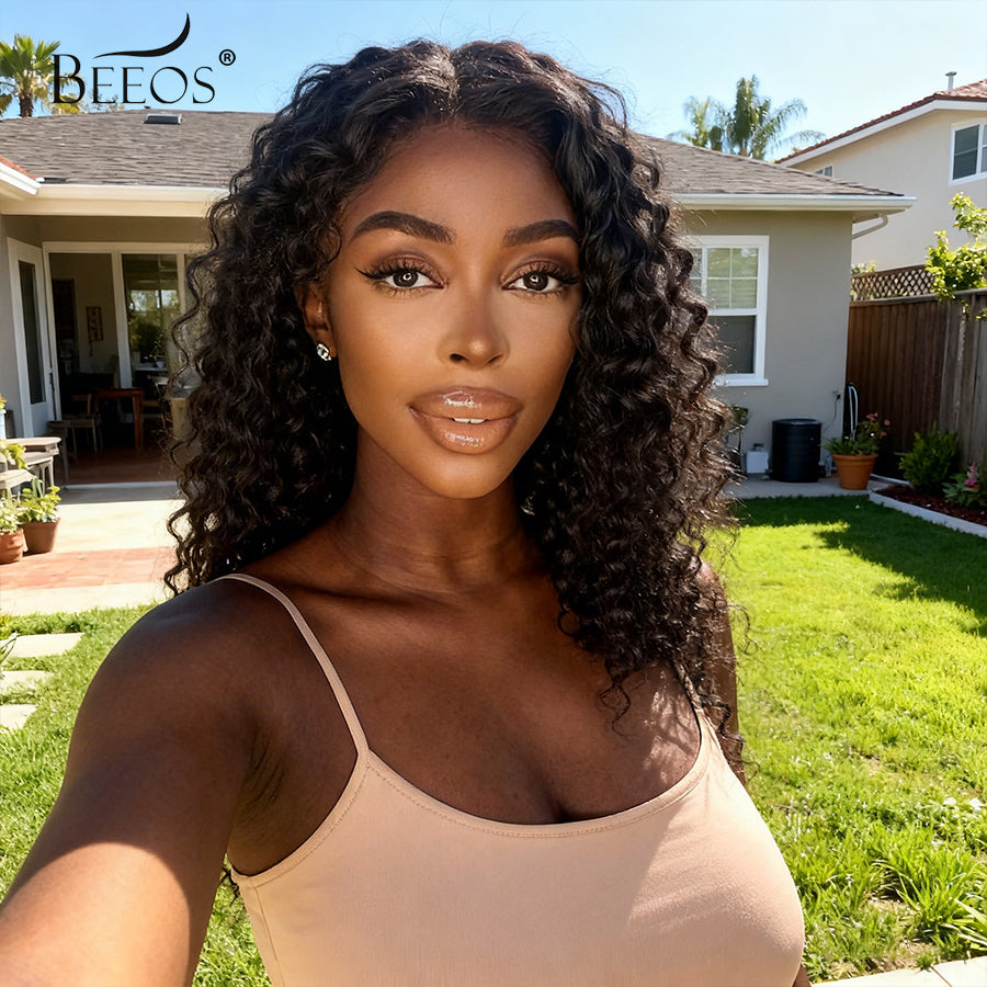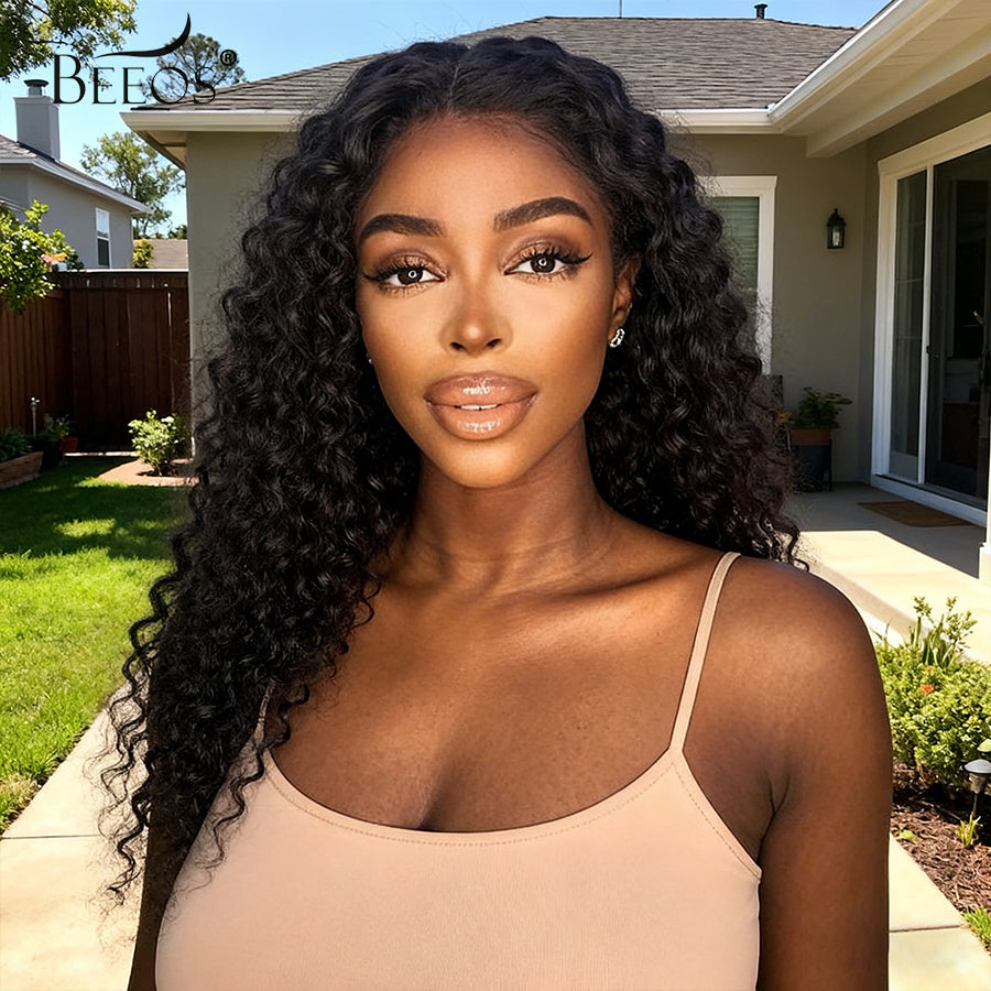 Beeos 13X6 Deep Curly Natural Color Skinlike Real HD Lace Full Frontal Human Hair Wigs BL208
