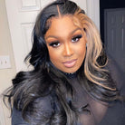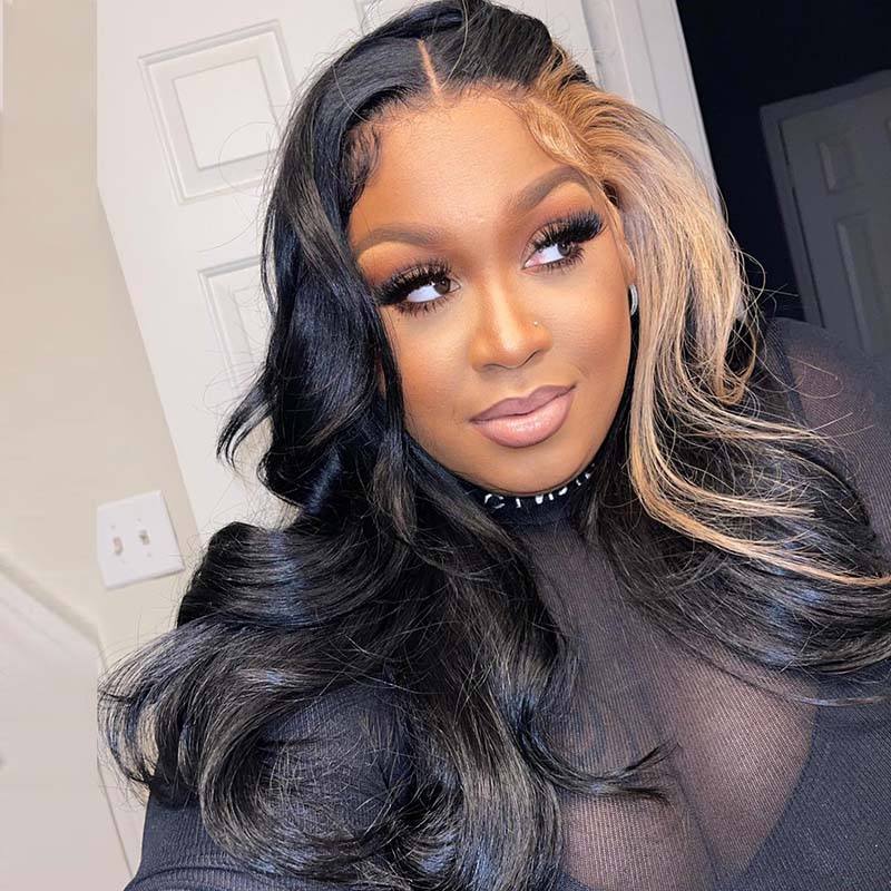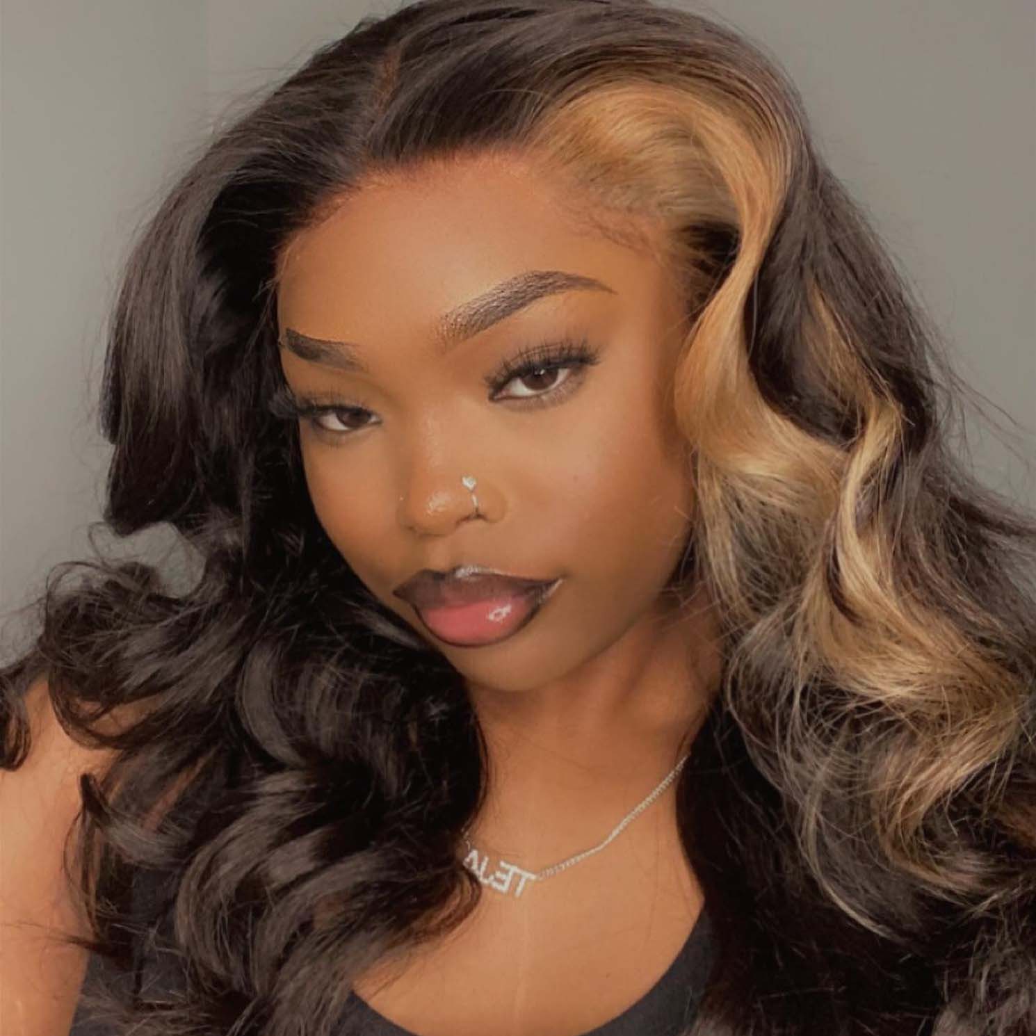 Beeos 13X6 SKINLIKE Real HD Lace Full Frontal Wig 250% Density Black With Blonde Skunk Stripe Hair BL133