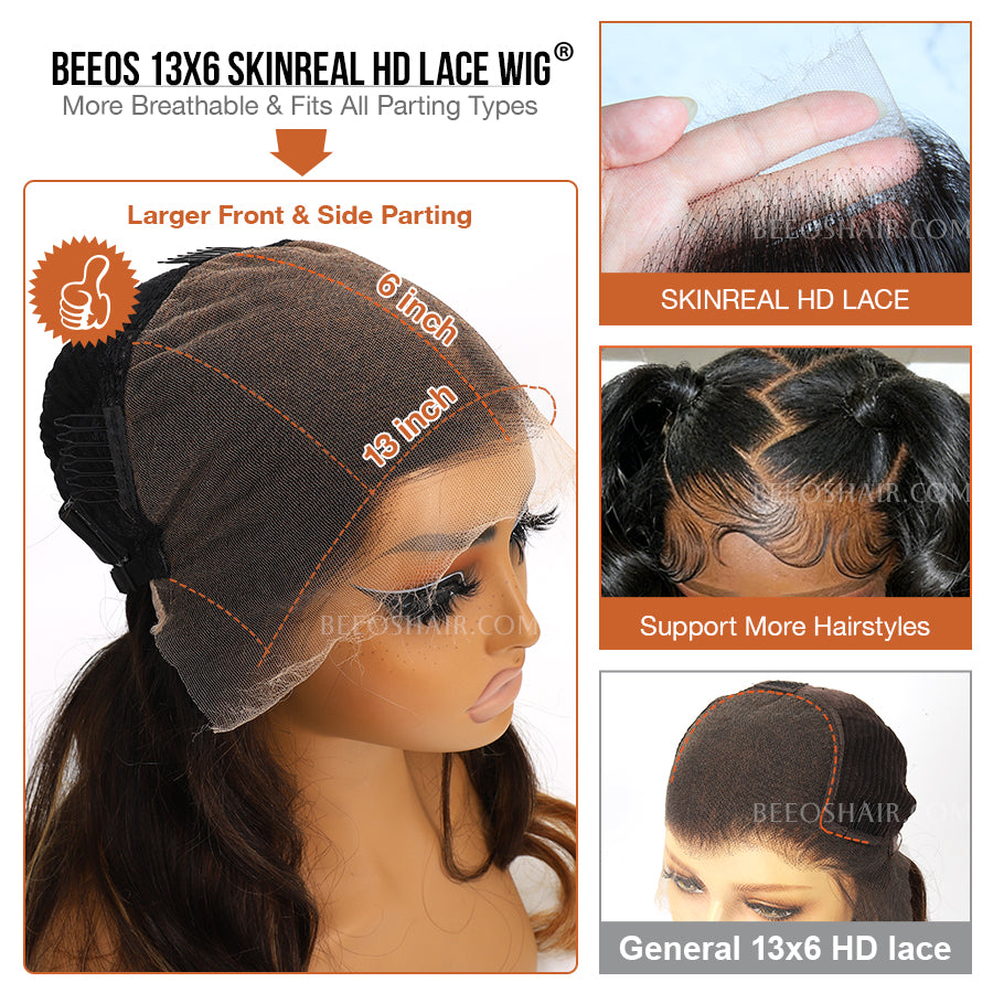 Beeos 13x6 SKINLIKE Real HD Lace Full Frontal Wig Ombre Balayage Highlight Body Wave BL046