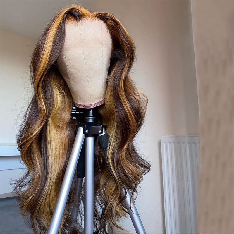 Beeos 13X6 Ultra Fitted SKINLIKE Real HD Lace Highlight Color Body Wave Full Frontal Wig BL155