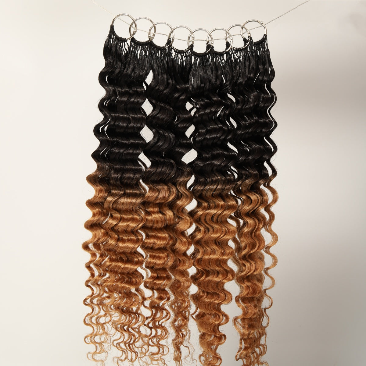 BEEOS 1BT30# Ombre Color Deep Wave Pre-Separated Feather Crochet 100% Human Hair Extensions ZH090