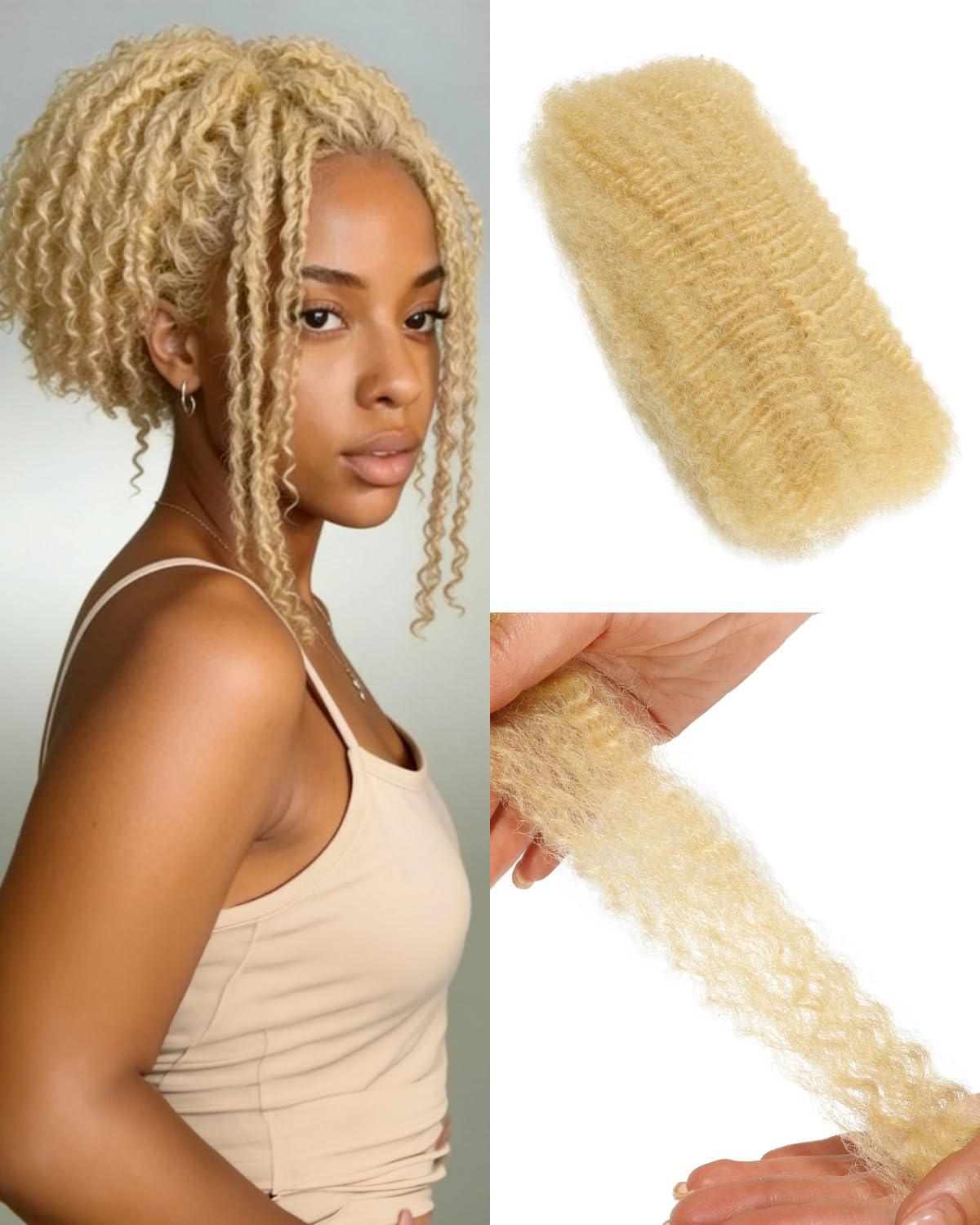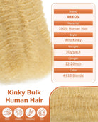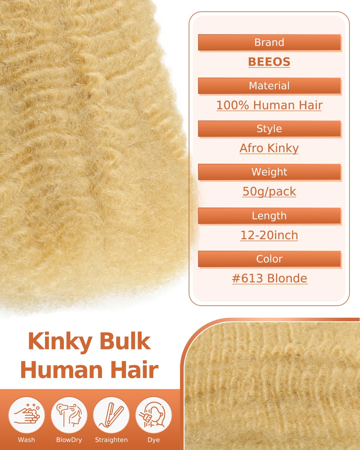 BEEOS 613# Blonde Afro Kinky Bulk Human Hair 4C Curly for Braids 50gram Per Pack Kinky-Curly Human Hair Bulk For Mini Twists Dreadlocks Extensions