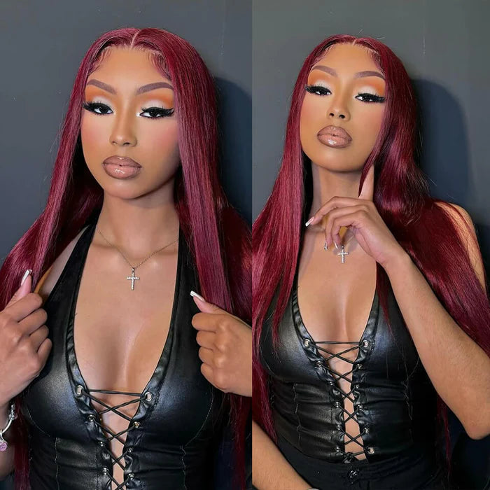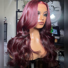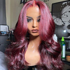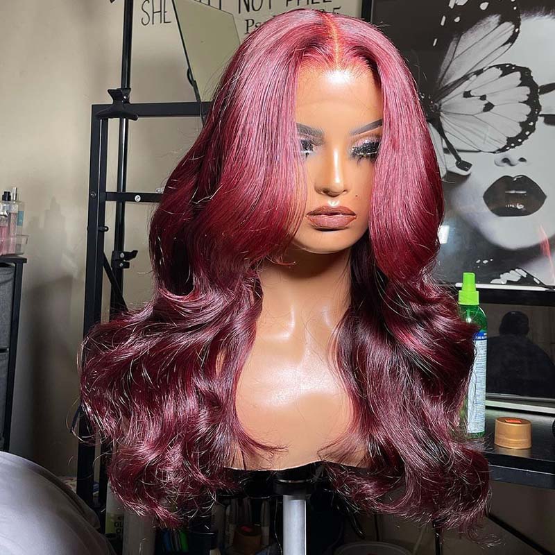 Beeos 99J Burgundy Color 13X4 Full Frontal Transparent Lace Wig Body Wave Sugar Plum Color BL010