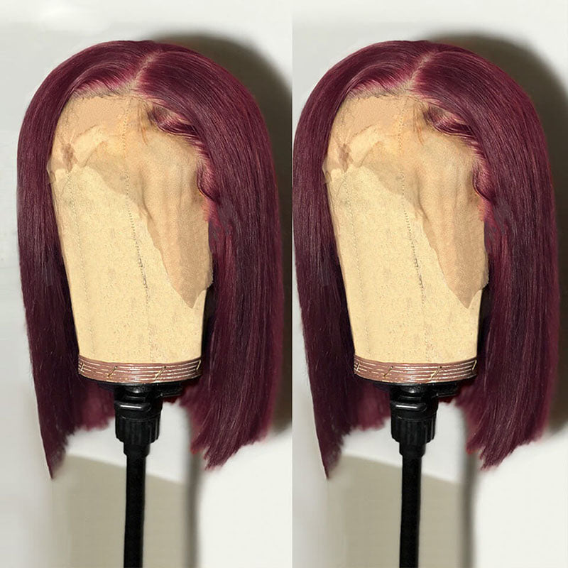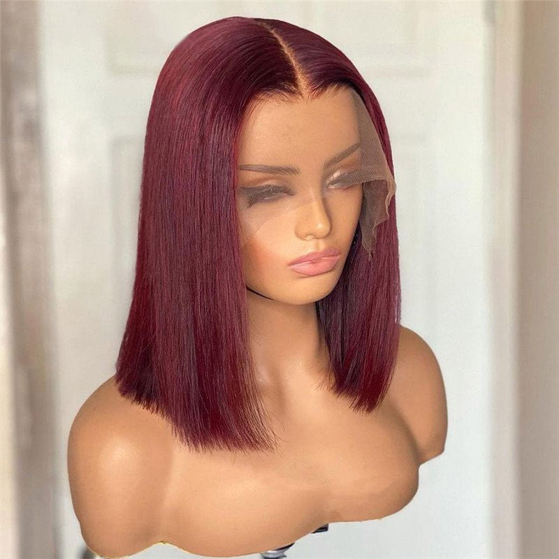 Beeos Blue Red & Ginger Color Bob Straight Transparent Lace Full Frontal Wig BL109
