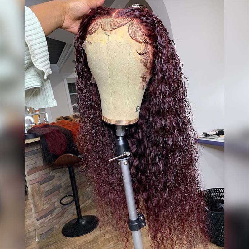 BEEOS Burgundy 99J# Color 13X4 Full Frontal Curly Style Wig BL281