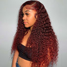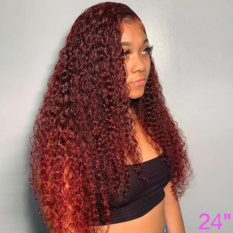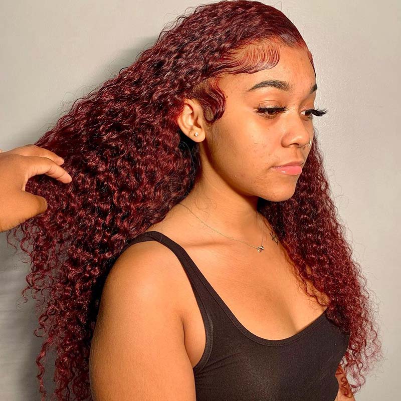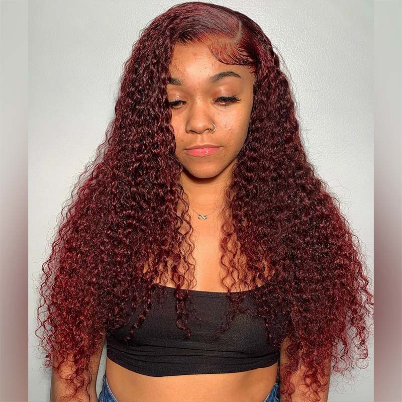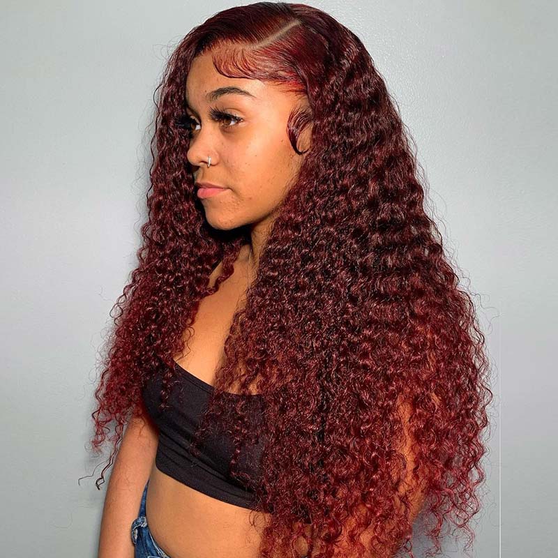 BEEOS Cherry Dark Red Color 13X4 Full Frontal Lace Wig Curly Style BL138