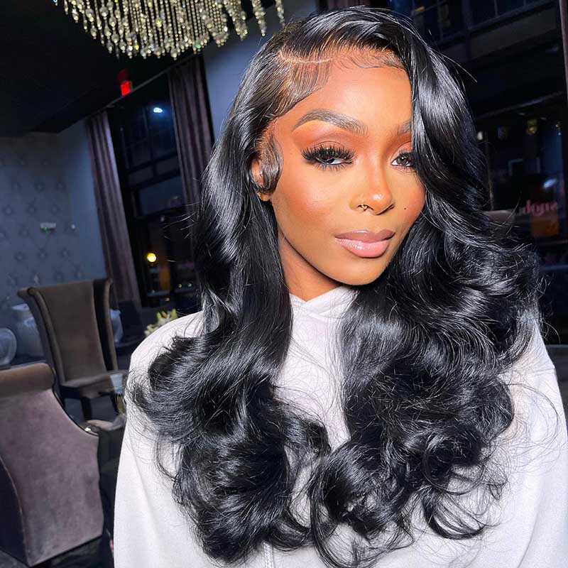 Beeos Jet Black 13x6 Full Frontal SKINLIKE Real HD Lace Wig Loose Wave BL228