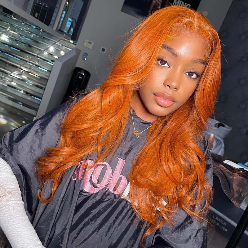 BEEOS Orange Color Body Wave 13X4 Full Frontal Tansparent Lace Wig BL152