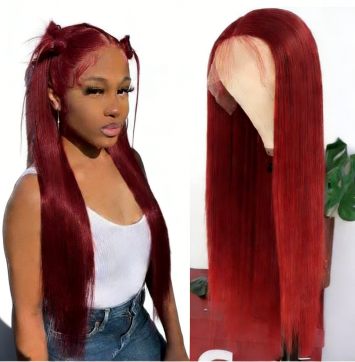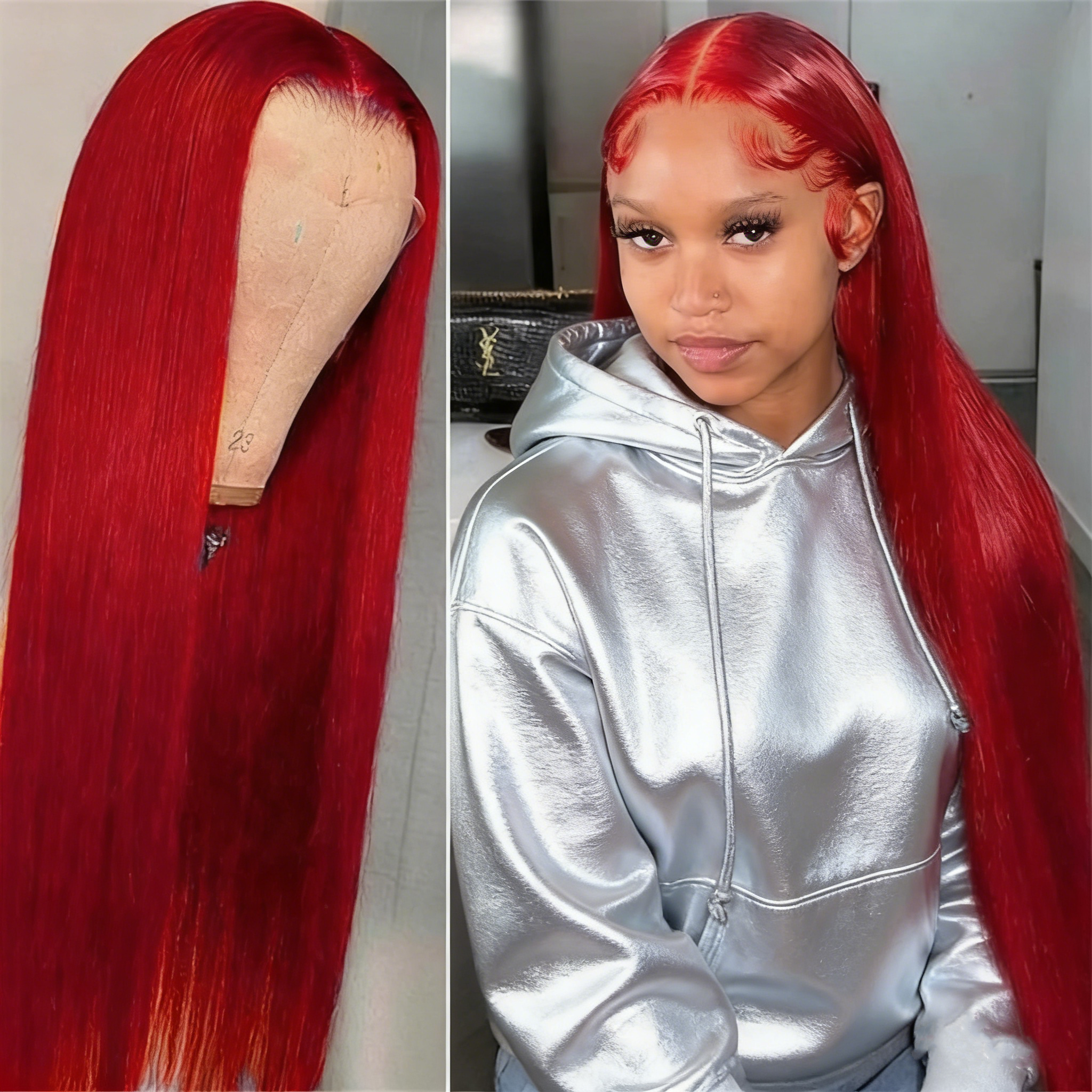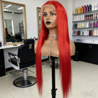 BEEOS Red Color Silky Straight 13X4 Full Frontal Tansparent Lace Wig ZH084