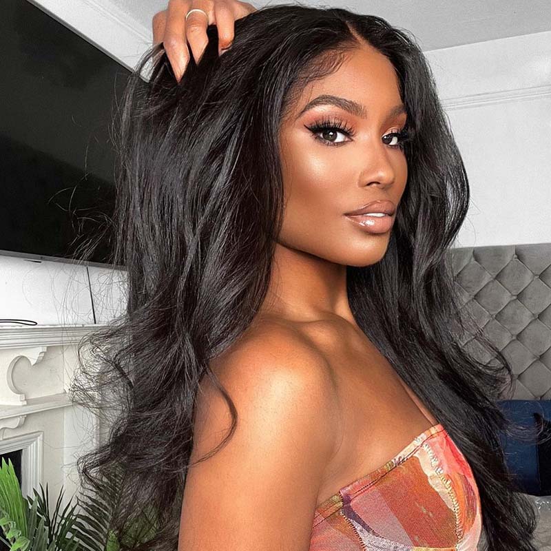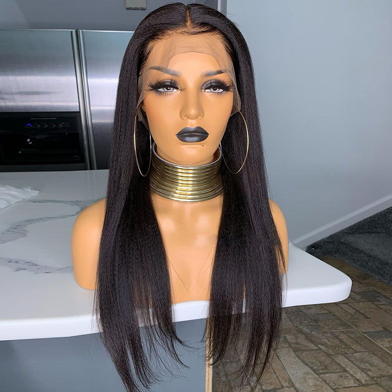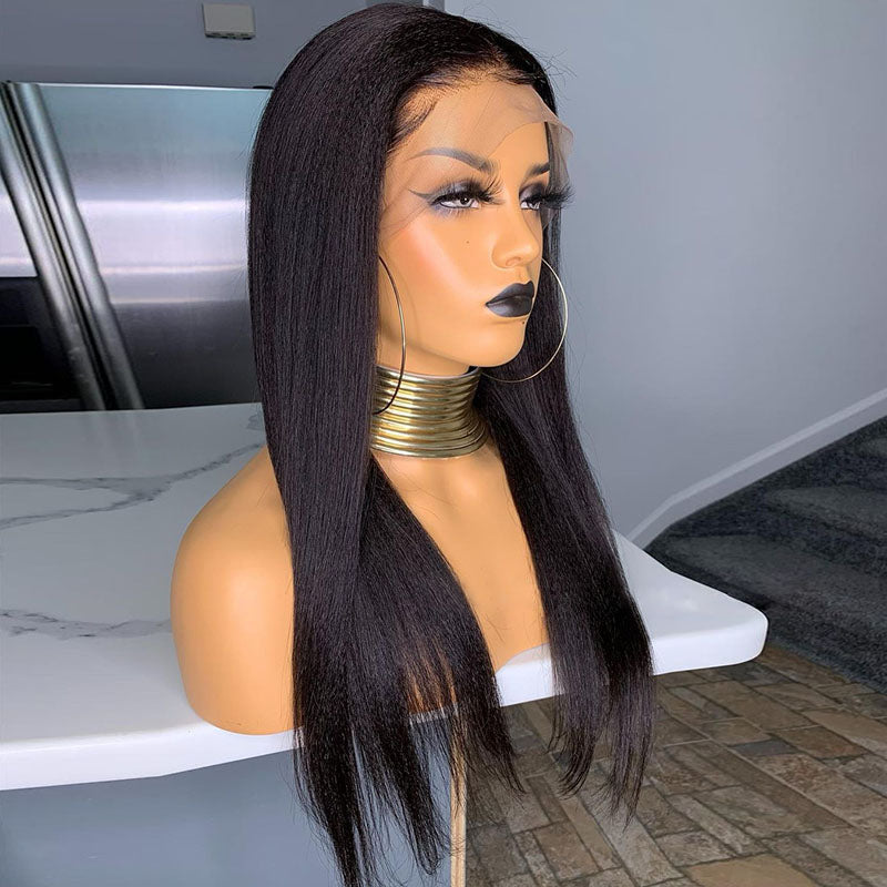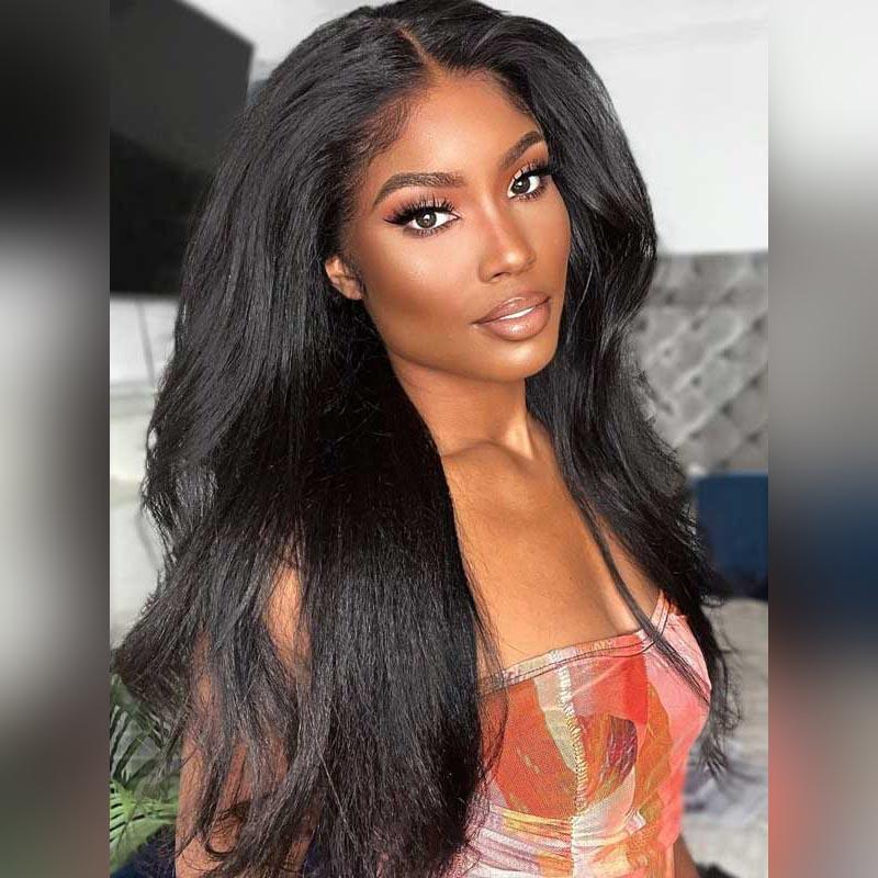 Beeos SKINLIKE Real HD Lace 13*6 Full Frontal Wig Yaki Straight Natural Black BL202