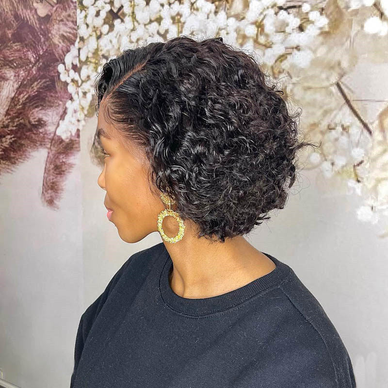 Beeos SKINLIKE REAL HD LACE 13x4 Full Frontal Natural Black Bob Wig Curly and Straight BL101