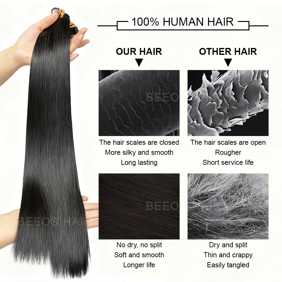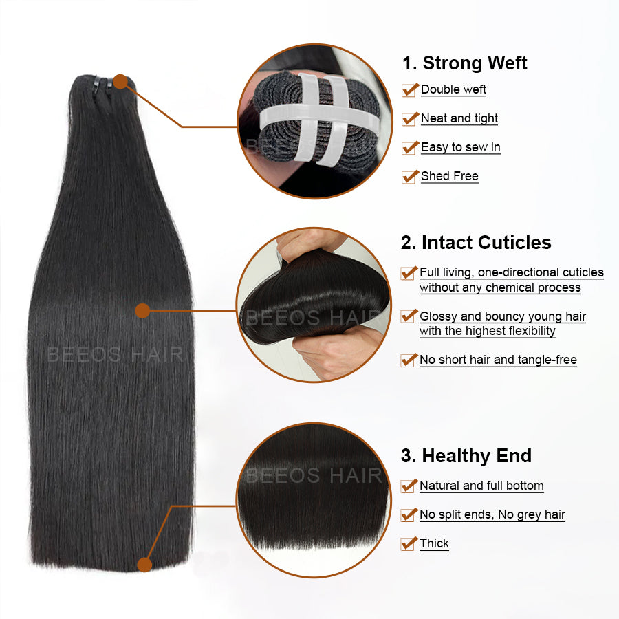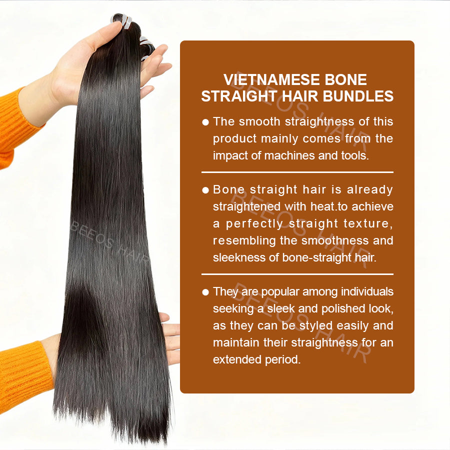 Beeos Super Double Drawn Vietnamese Bone Straight Hair Bundles 100% Raw Human Hair Wefts ZH048