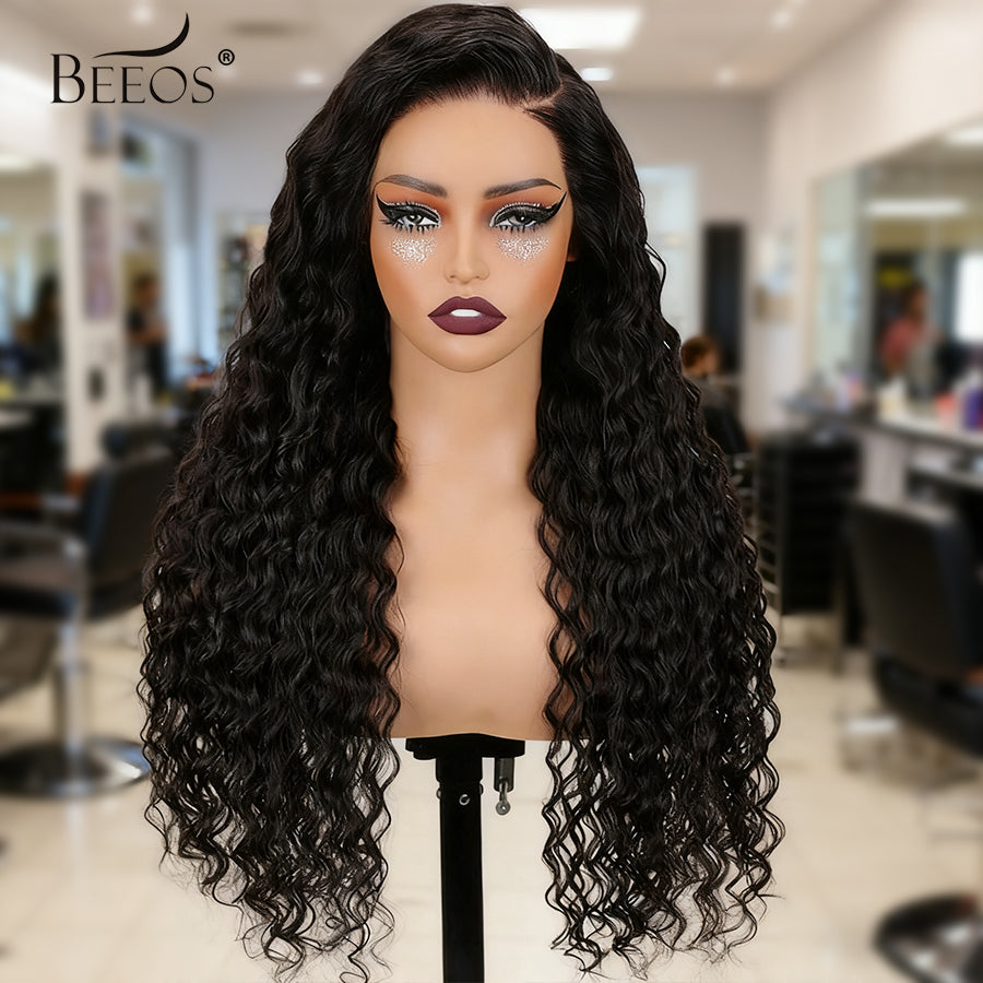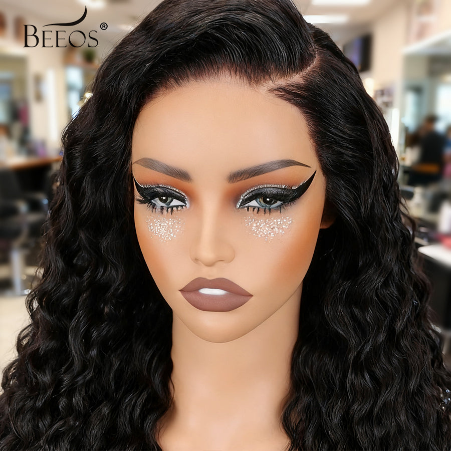 BEEOS Ultra-fitted 13X6 SKINLIKE Real HD Lace Full Fontal Curly Wig Natural Black Color AM24
