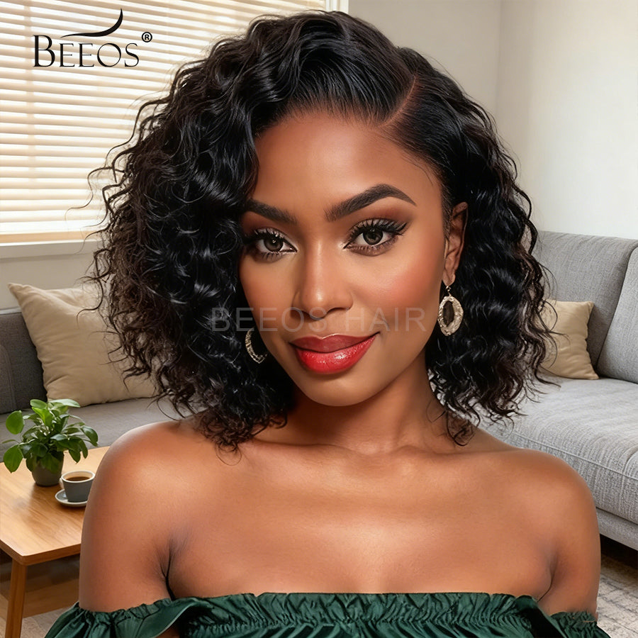 BEEOS Wear & Go Glueless Wigs 5x5 SKINLIKE Real HD Lace Closure Wig 180% And 250% Density 100% Human Hair Curly Bob Wigs No Glue ZH052